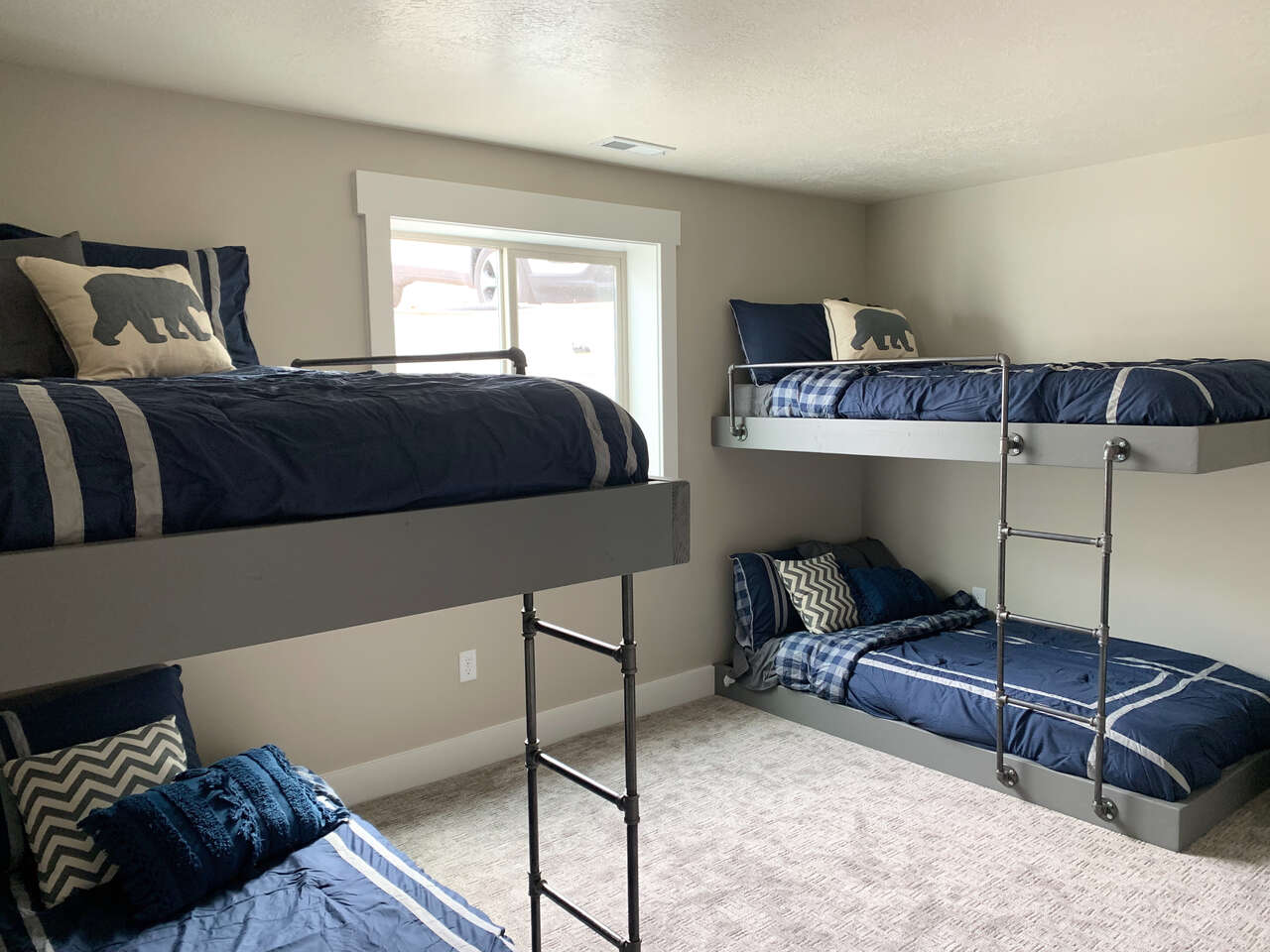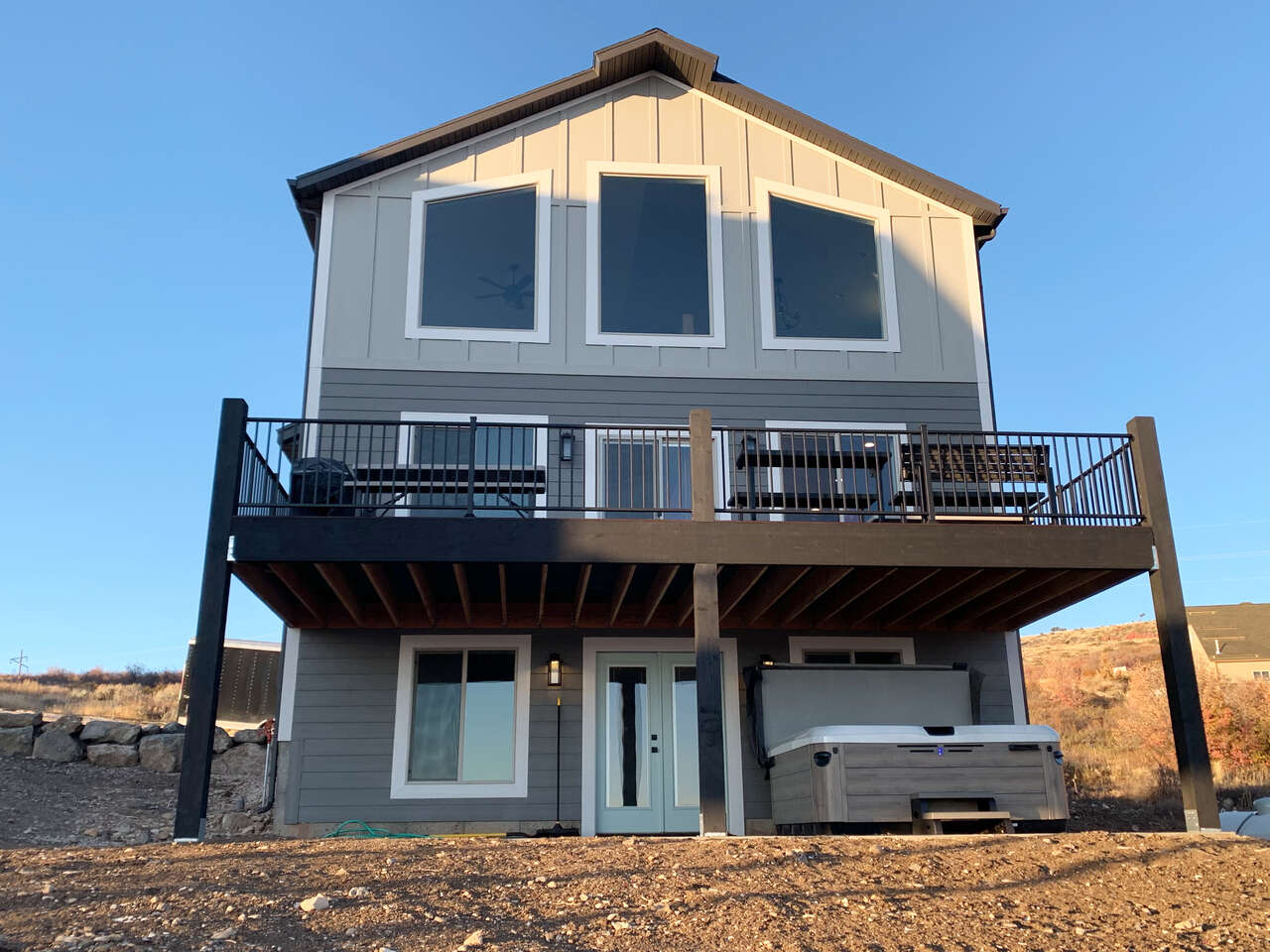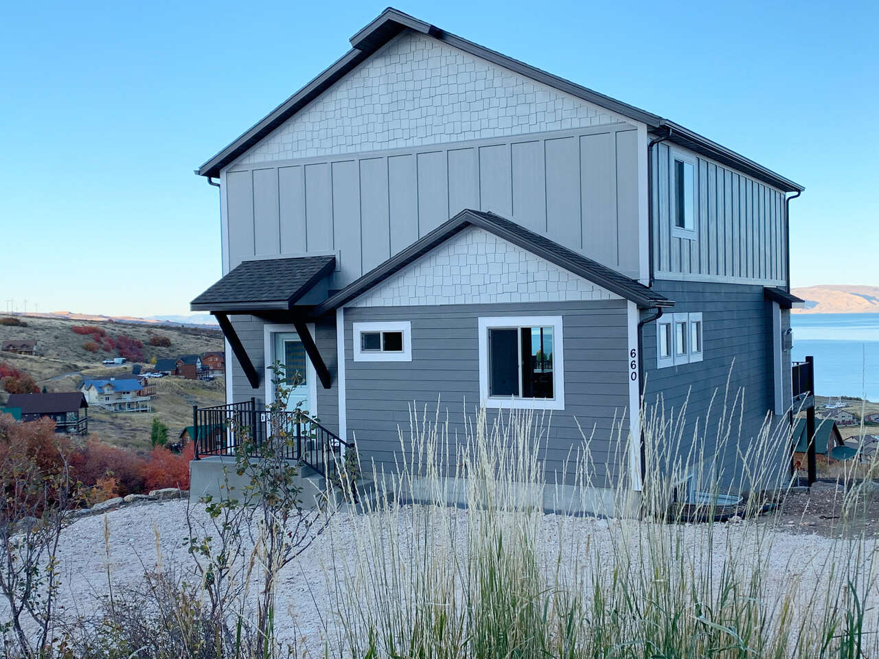Bear Lake Vacation Rental with breathtaking views of the lake and marina. Relax as family and friends in our beautiful new construction Urban Mountain Retreat. This property sleeps 22 guests. 5 Bedrooms 3.5 baths. No smoking vaping, drugs or pets of any kind. This is not a party house. 2 night stay minimum. $350 cleaning fee. Plan the perfect get away in Bear Lake today and come take advantage of our off season winter pricing $399/night. $399 off season pricing available late October-April. (some dates excluded) We are also accepting bookings for summer 2026. Call or text for rates- summer books quickly. Summer rates $499-750/night. Perfect for families who want to relax in style. This retreat is perched on the mountain overlooking Bear Lake's crystal blue waters. Loacated close to state marina allowing easy access to marina boat launch. It features all the amenities needed to make you stay comfortable with quality finishes, fully stocked linens, toiletries, towels, and wifi. It's the perfect location to boat, snowmobile or ski. We have direct access to mountain ATV and snowmobile trails. We are located within walking distance to the lake, marina, boating, fishing, biking, hiking and walking trails that are located in beautiful Bear Lake. Included in your stay, we feature 8 person bullfrog hot tub, turf grass, bbq, swings, foosball table, and sure shot basketball system. Come stay with us and enjoy all Bear Lake has to offer.