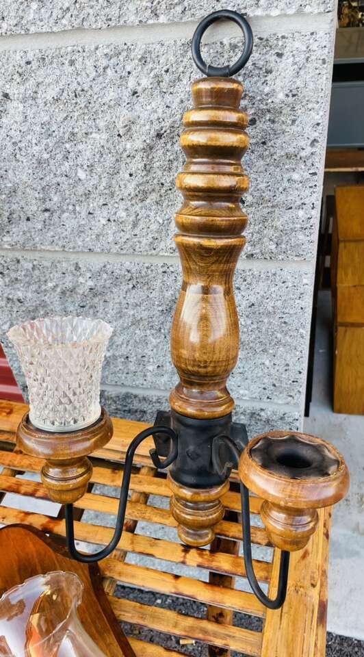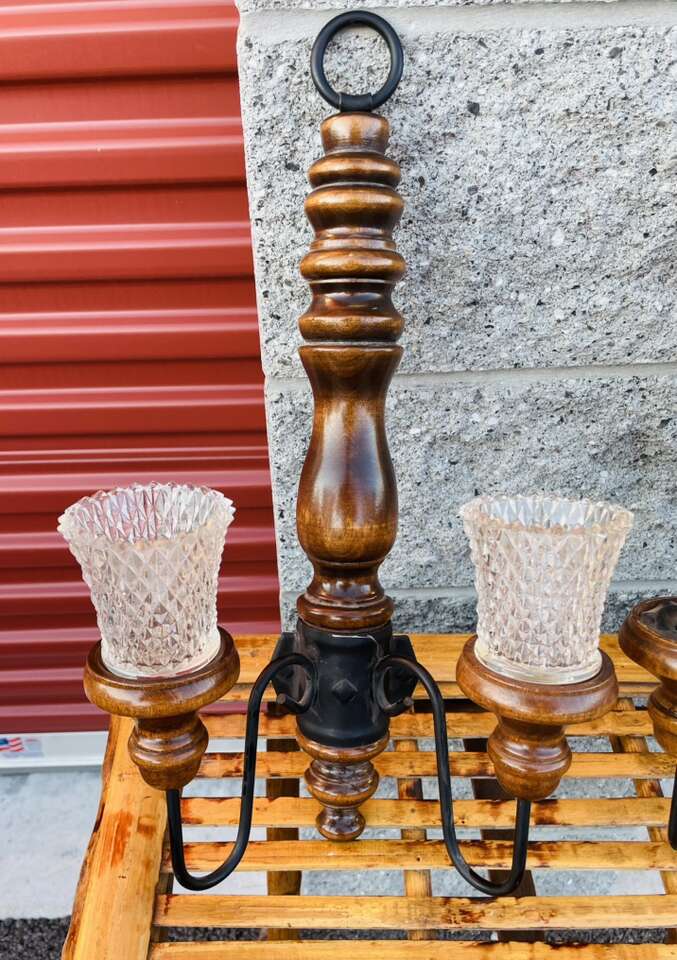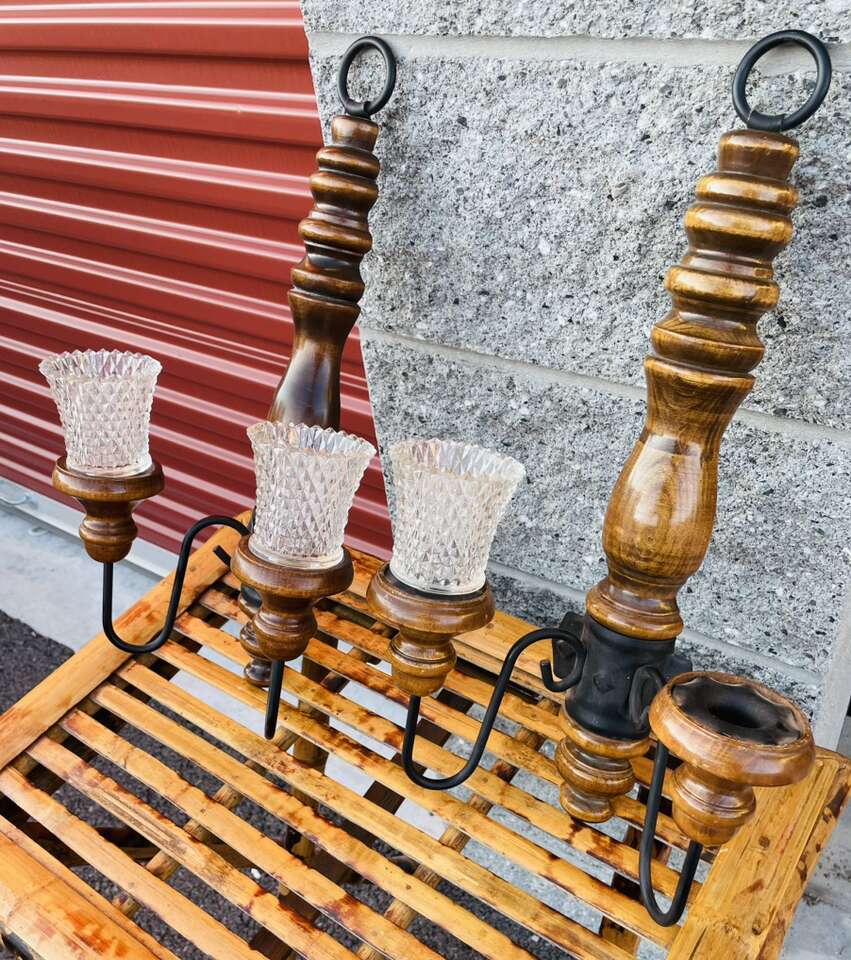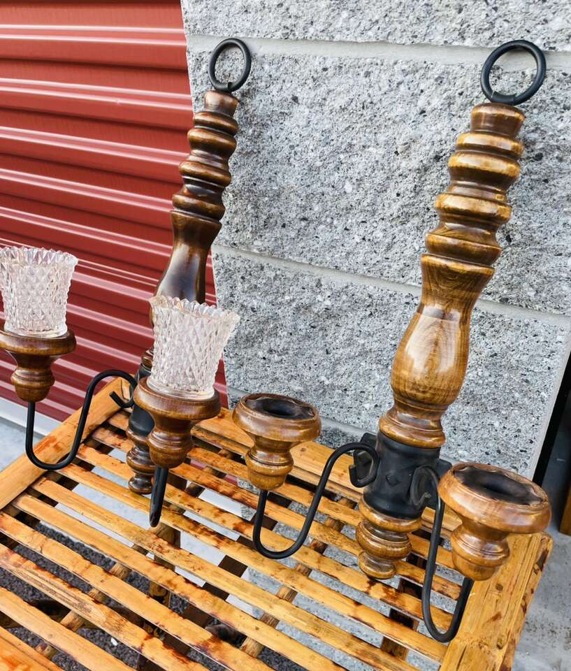 Incredible vintage wall sconce/candle holders. Metal and wood in perfect condition