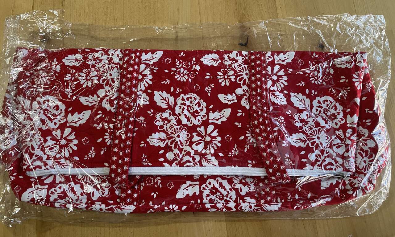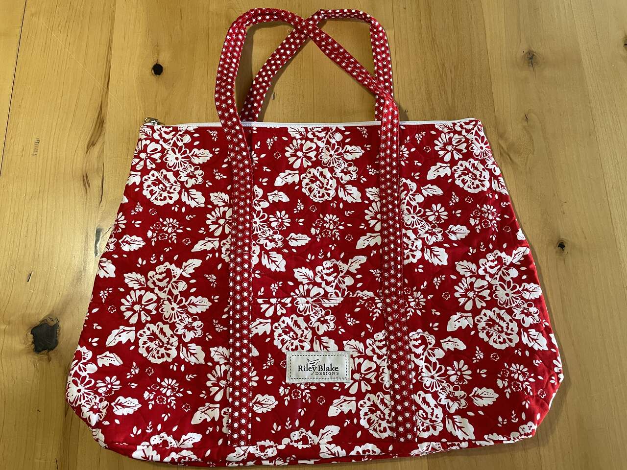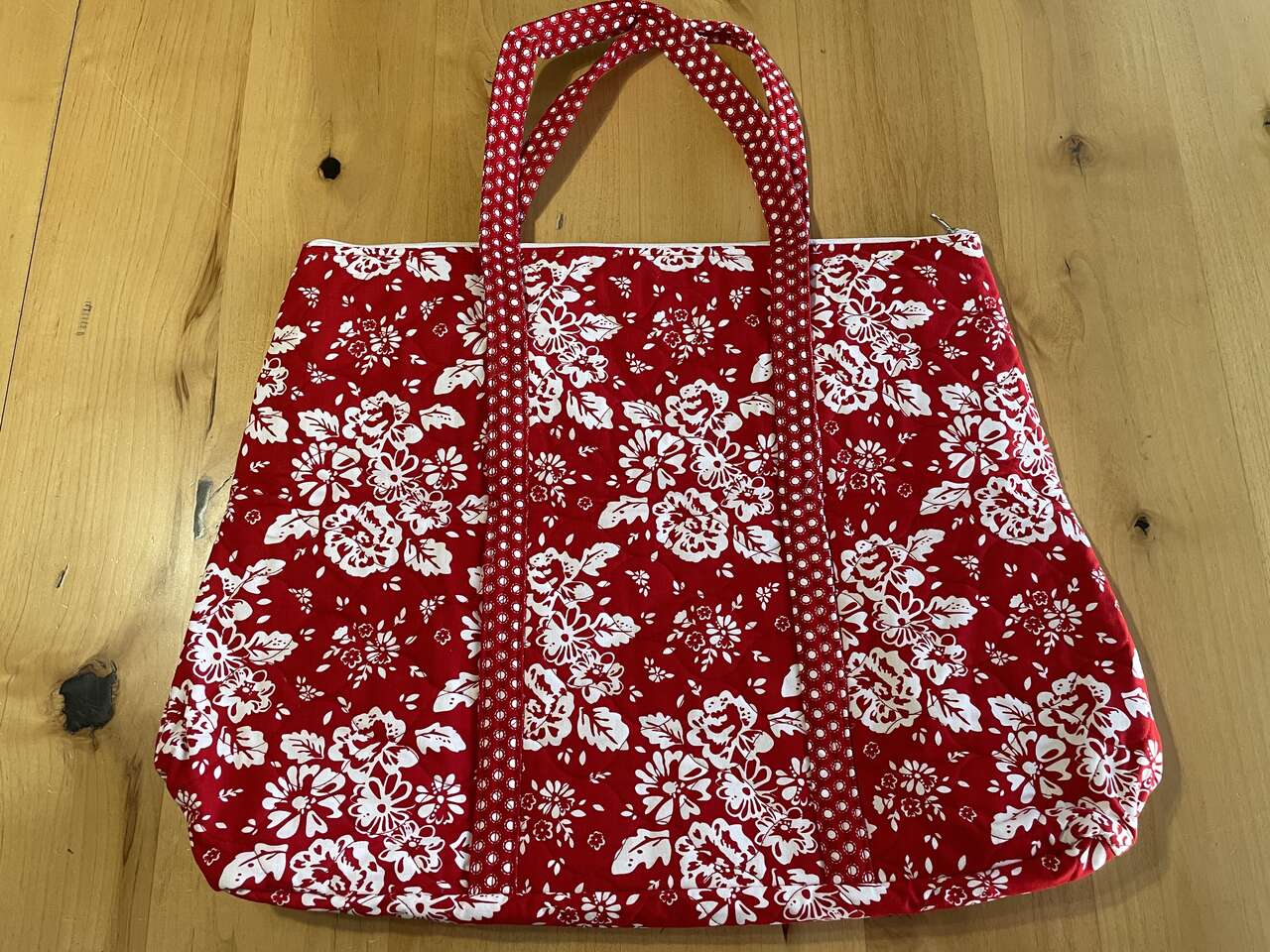 VenmoNew Riley Blake Designs Red Flower Quilted Tote Bag, is perfect for filling with your favorite on the go sewing supplies, an overnight bag, or just to carry the essentials. Zipper close, fabric straps 10 1/2" length, & front pocket, bag size 12" high x 18" across.