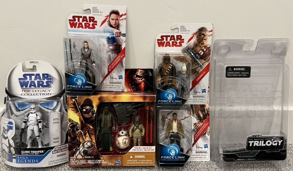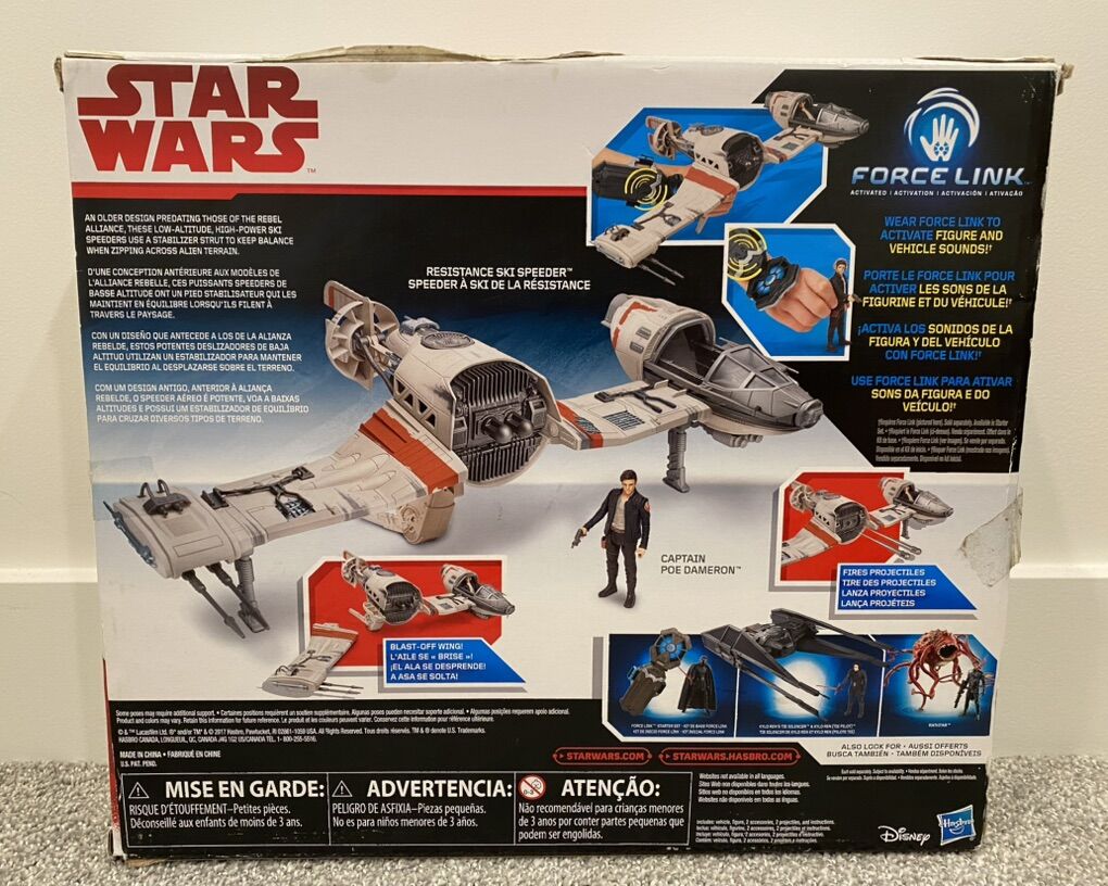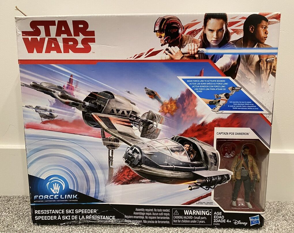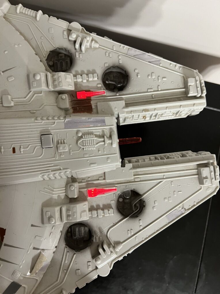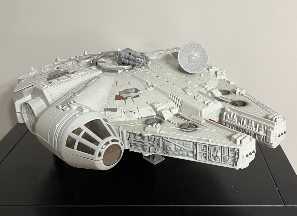 Millennium Falcon is a vintage toy, complete. It has lights and sounds features, projectile missile launch feature for play. The Ski Speeder is new. Most toys pictured are new. Some packages may have some minor shelf wear or minor damage. All loose figures are in mint conditions. I am willing to sell separate too. Message if interested.