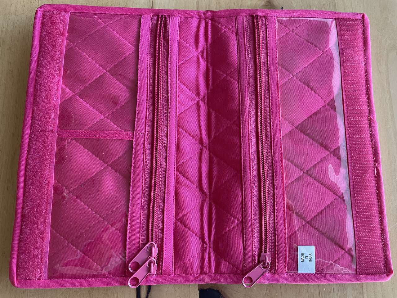 VenmoFuchsia color, Yazzii Crafts Project Folder - - Portable & Multifunctional Crafts Storage Organizer for Sewing, Embroidering, Crocheting, Knitting & More, The folder has a clear front to see the contents. Size 15. 2in x 12. 8in
