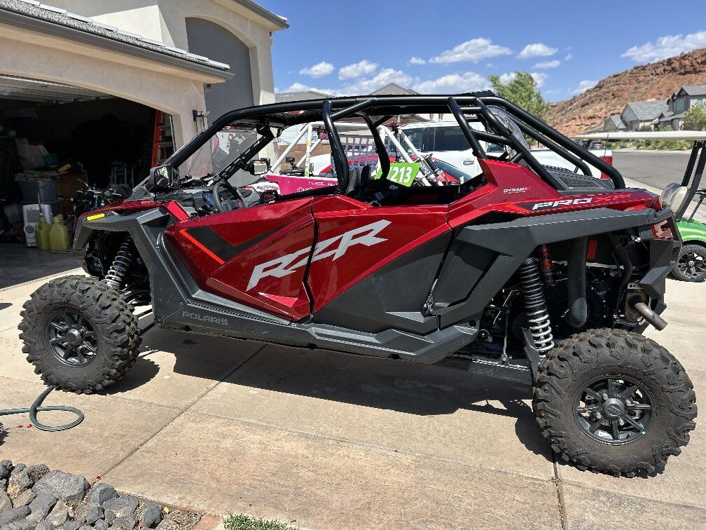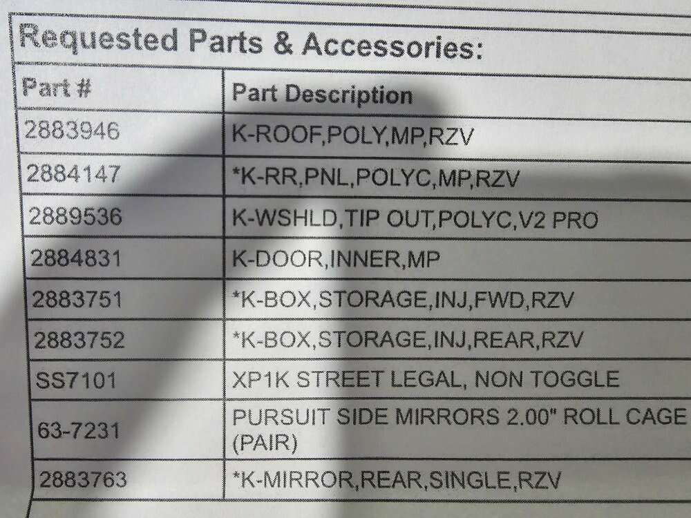 Whoops! I had it listed as 2022. Its a 23, my bad! Has all the parts in the last picture. Includes a front window, street legal kit, bottoms on doors, two storage totes in the back, and a metal roof! Minor scratch on drivers side door. In great condition, less than 150 miles! Email if you have any questions, my phone has been acting up and I may not get your text!!