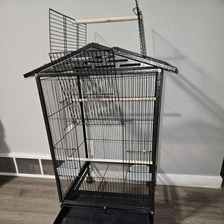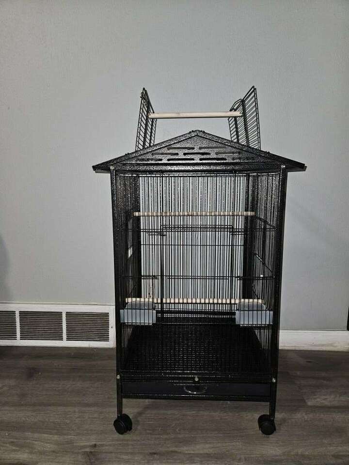 This cage is brand new medium size on the wheels. Comes with two dishes and three perches. It has two doors on each side, one small door and one large door on the front of the cage. Top opens up for access. I am asking $120 for these cages. I have other cages, too, with different sizes and types. See my other ads.