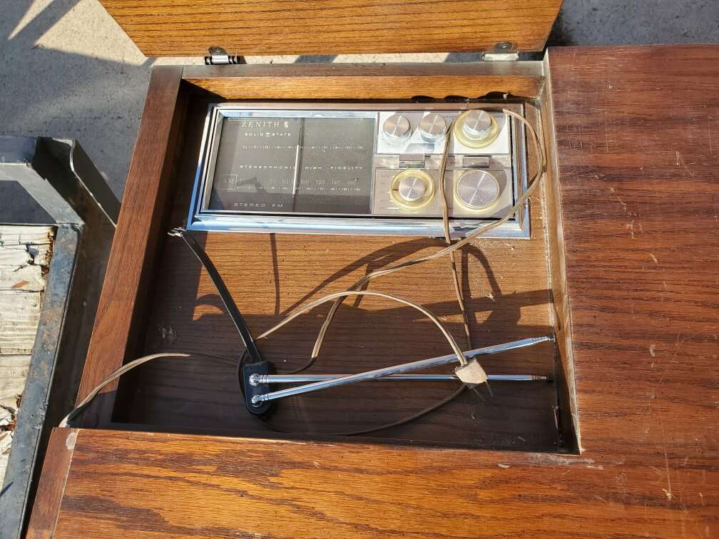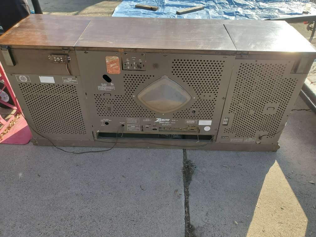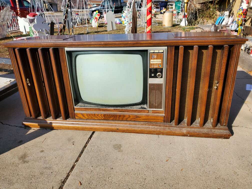 Up for sale I have a beautiful vintage Zenith radio television and record player. Radio works only the right speaker seems to work I'm not sure if wires have come undone we have not tested the record player or the tv. This is very heavy and you will need multiple people to be able to move it. Located in Roy Utah also has the TV remote which is hard to find. It is in pretty good condition especially for its age. Located in Roy Utah. might be willing to trade for video game or video game consoles or metal detectors or silver coins just depending what you have