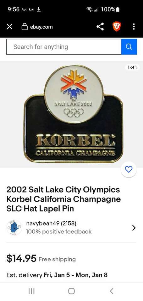 2002 Salt Lake City Olympics Korbel California Champagne SLC Hat Lapel Pin