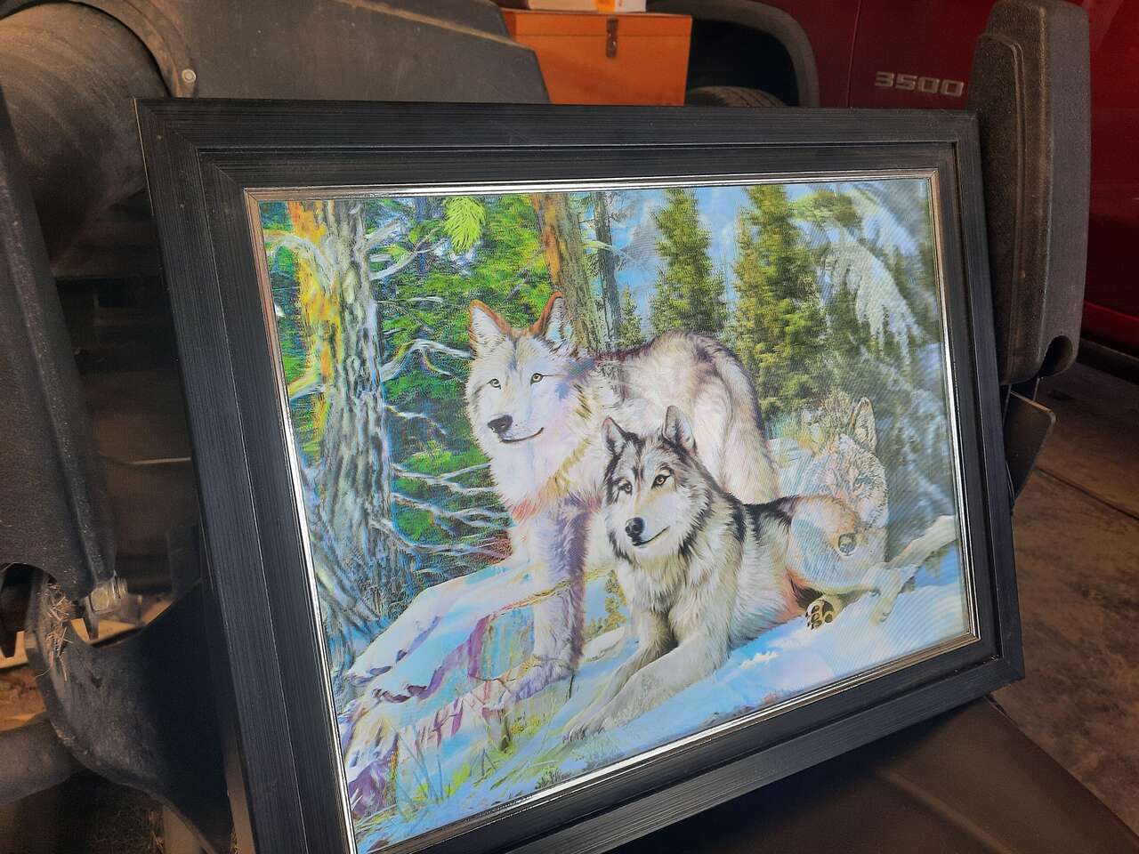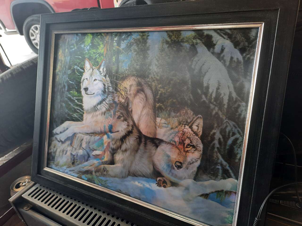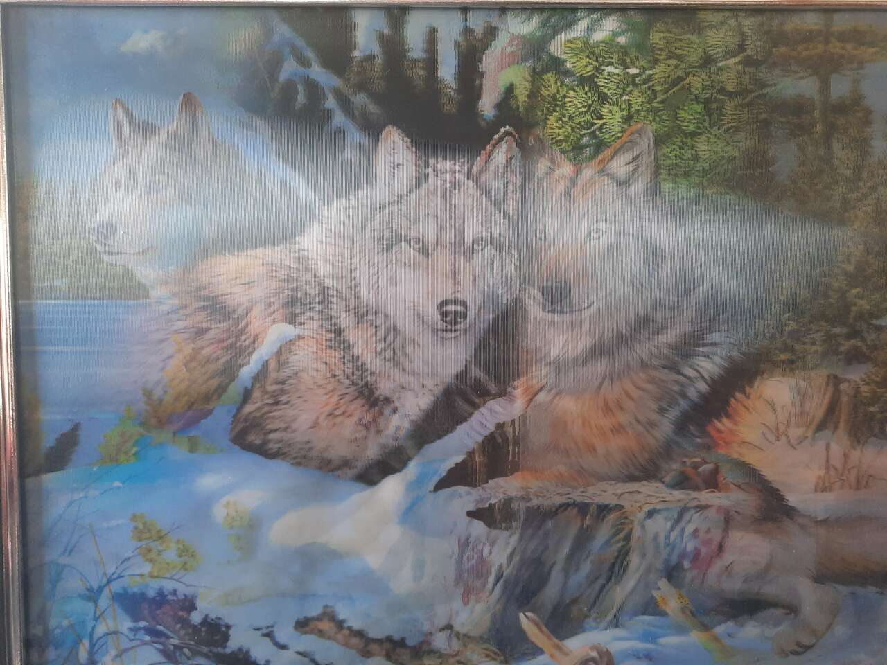 I have a framed 3 D wolf light. The wolf moves as you move just like new. Asking $50.00 or best offer