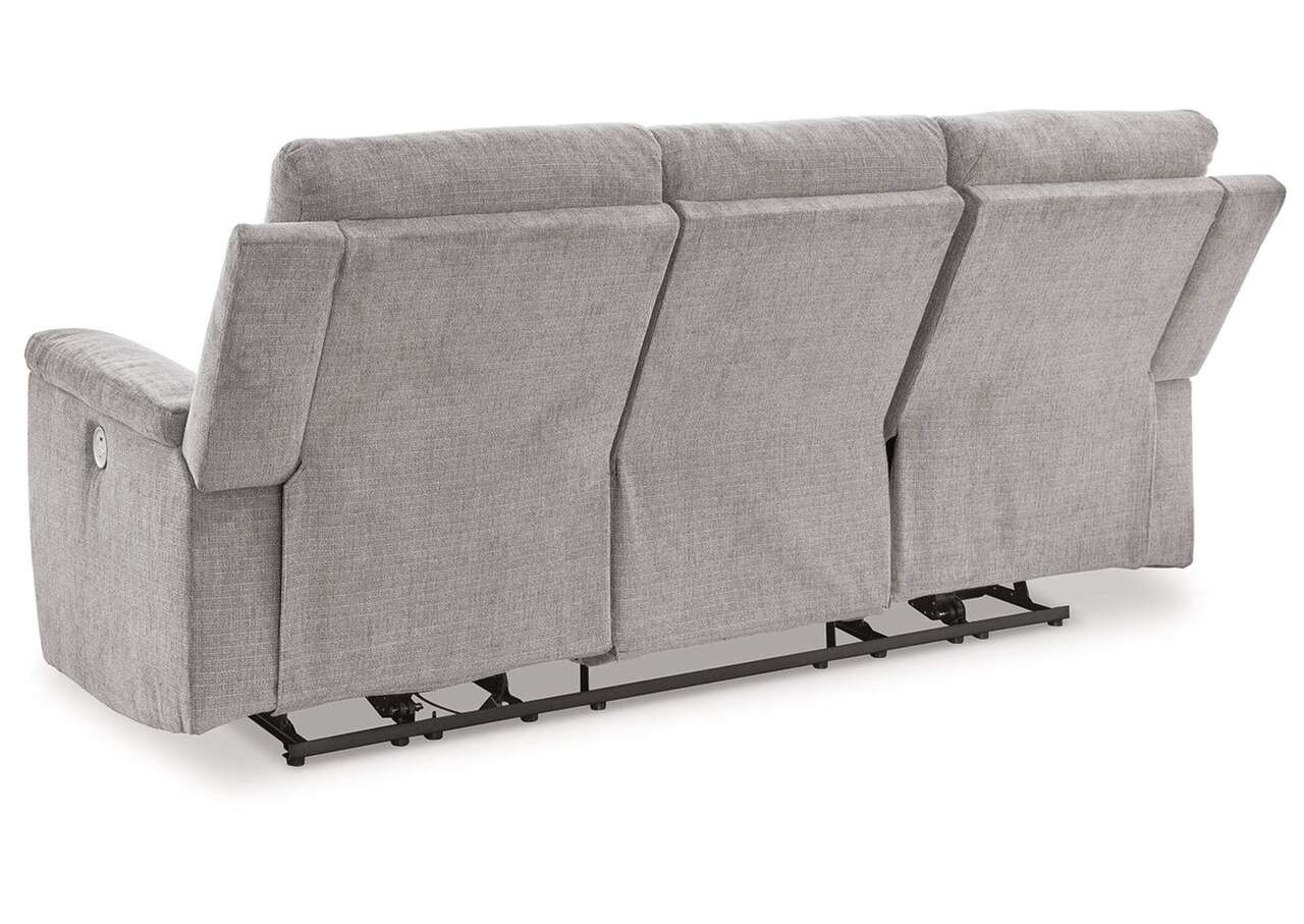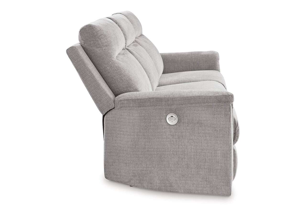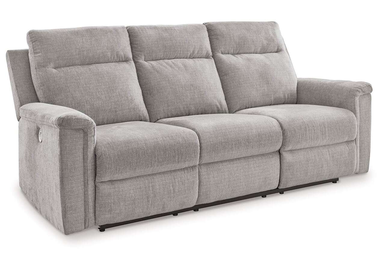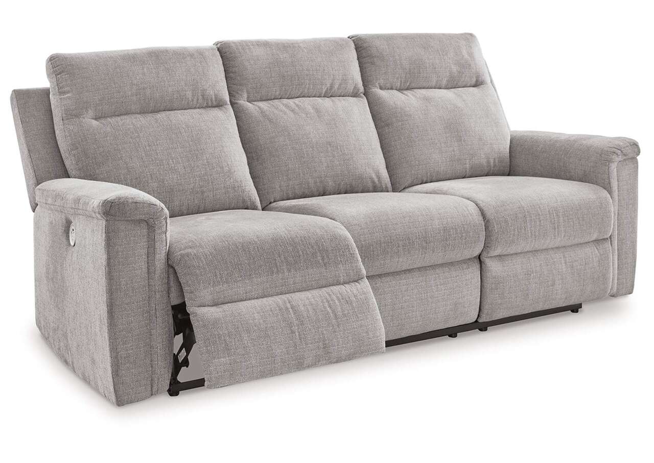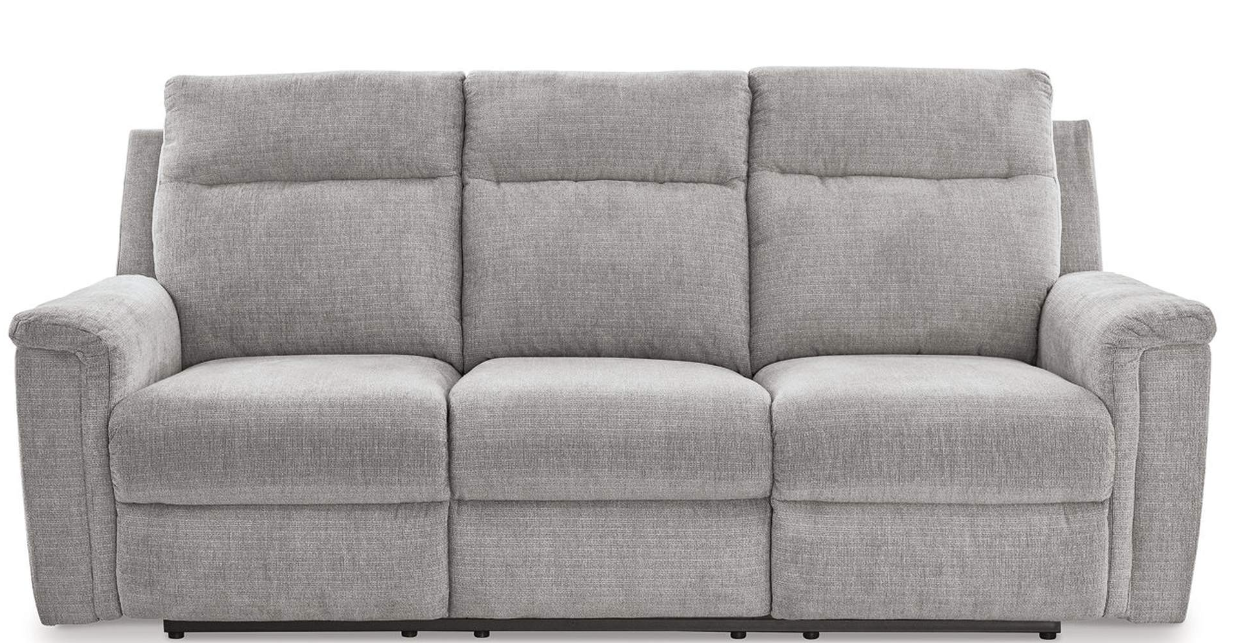 The ability to go from fully upright to relaxed and stretched out, all at the touch of a button, awaits. A beautiful blend of plush upholstery and casual style, the Barnsana power reclining sofa invites you to sink into ultimate comfort. Whether you're hosting guests or lounging alone, you’ll find it hard to leave your living room—that’s a given.Dual-sided recliner; middle seat remains stationary