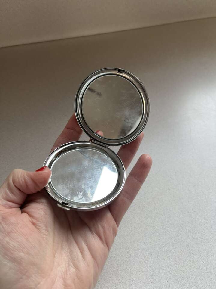 Vintage style Brighton Collectibles pink leather topped double sided mirror 3”