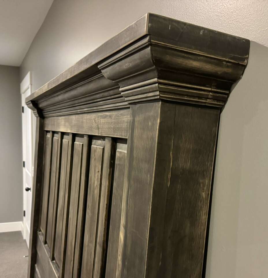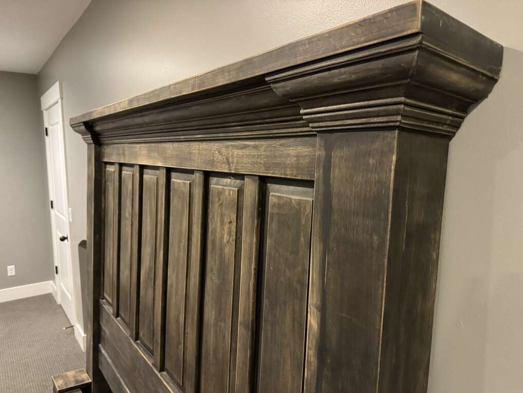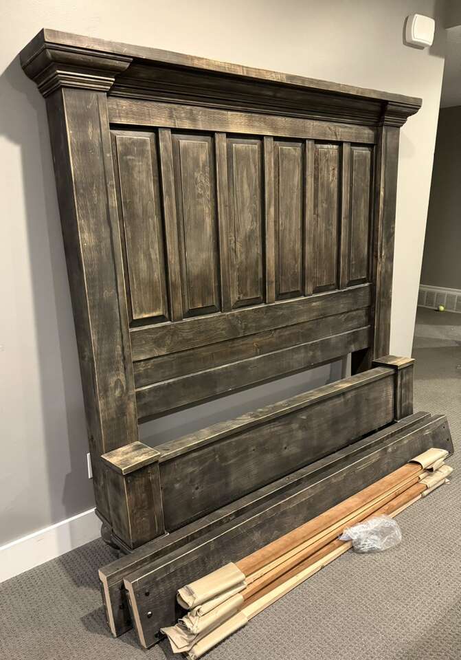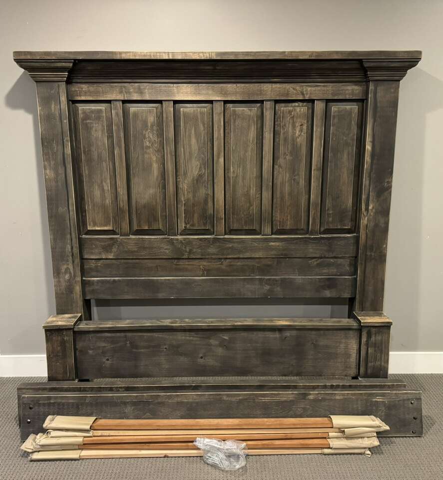 This is a handmade, hardwood bed fashioned after a Restoration Hardware style bed. It is beautifully crafted, well made and heavy-duty. Because it’s hardwood, it’s a heavy bed. It comes with the headboard, footboard, side rails, slats and all the hardware. It fits a queen size mattress (not included).