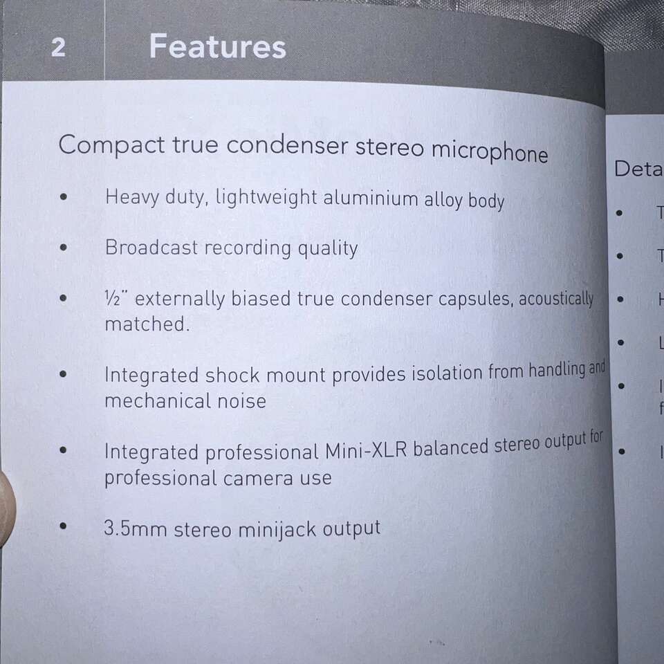 40 Hz to 20 kHz frequency response, and 9V battery or 48V phantom power. It is built with a balanced mini XLR (TA3F) output connector, and an unbalanced 1/8" output stereo mini jack plug. The Stereo VideoMic X can deliver professional-grade audio and gets the job done when capturing audio in various environments.