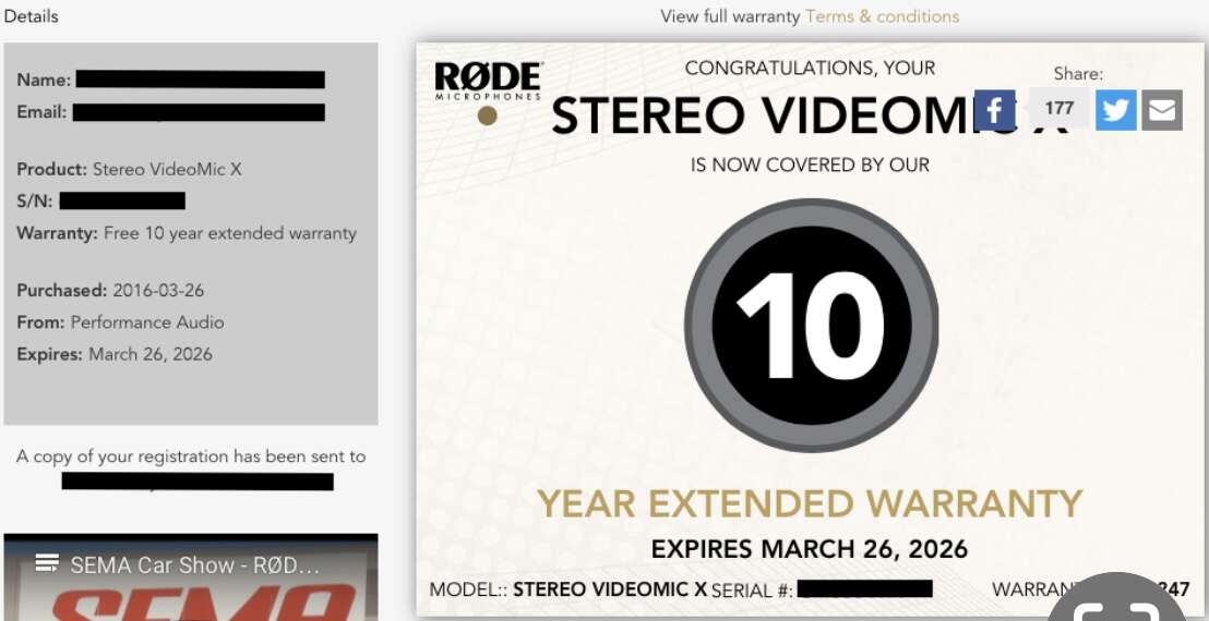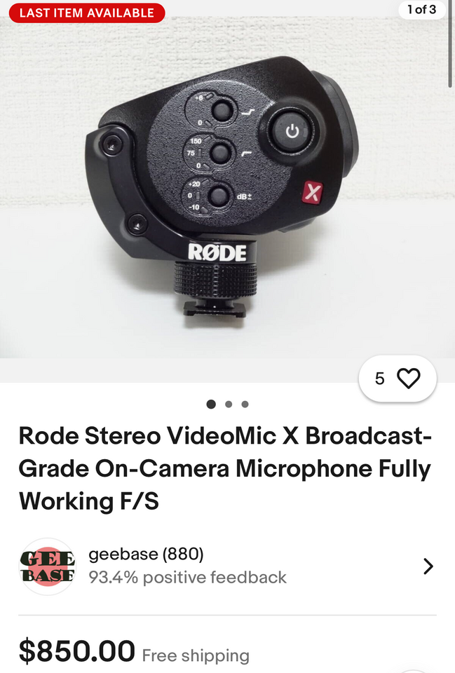 ZellePRICE REDUCED FROM $600 TO $500 FIRM! This mic is out of production, but highly sought after. It's in excellent functioning condition! It is also in excellent cosmetic condition. The only mentionable is the outer plastic cover of the foam windshield. See pics. Still works perfectly, just cosmetic. The fur windshield is in perfect condition. It comes in the original box. It came with a 1 year manufacturers warranty, but we registered it with a 10 year warranty, expires 5/26/2026, see last pic. We paid $799 plus tax. There are two lisiting on eBay, one for $690 and the other for $850 and both are missing some of the original accessories and neither has the original box or warranty. We used this with our Sony 4K Handycam, but we sold the camera.