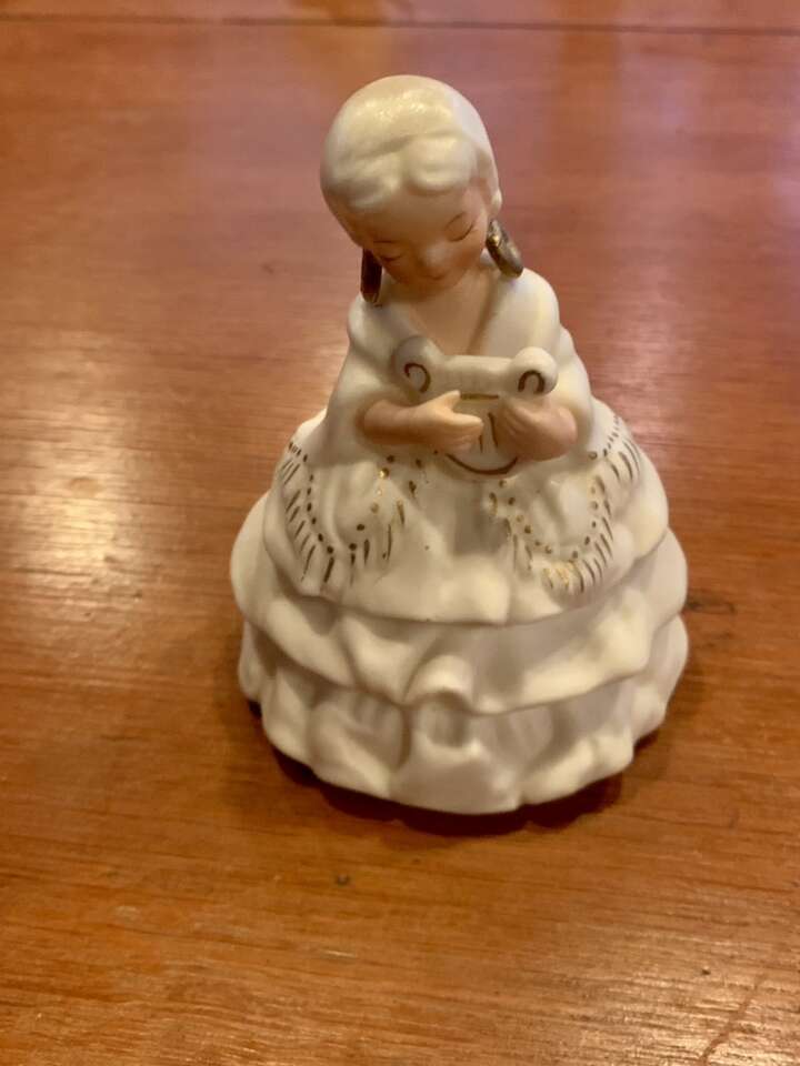 Vintage NORCREST Porcelain Girl Figurine lyre Hoop Earrings F617, Japan; $15
