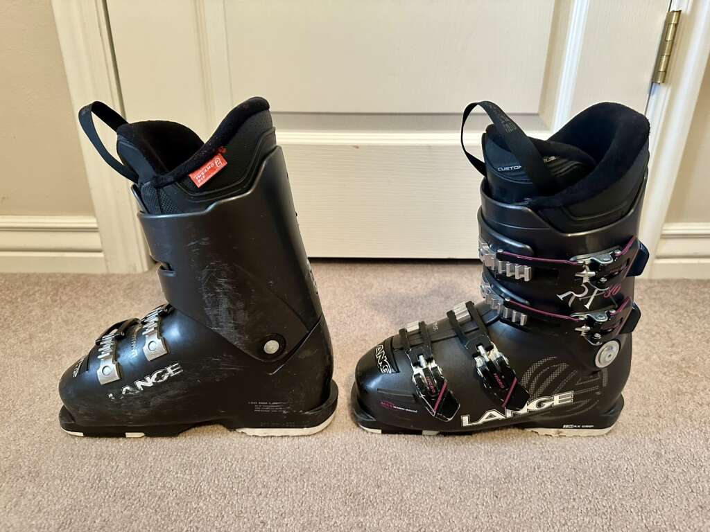 Size 23-23.5. Good condition. Black and purple colors. Ready for the slopes. $80.