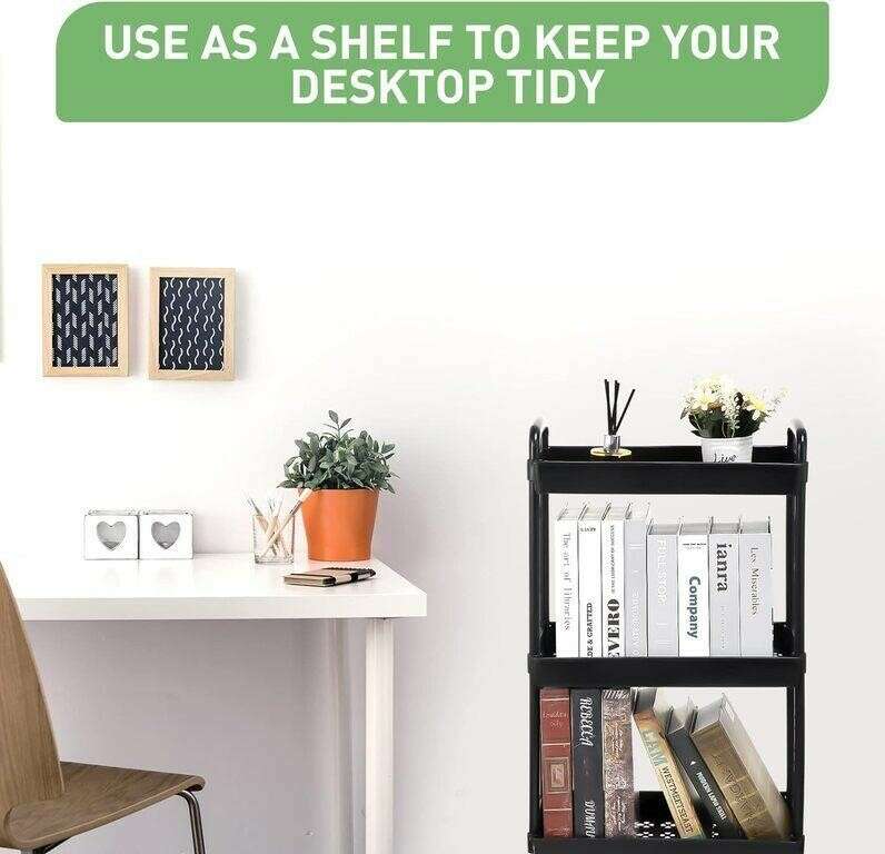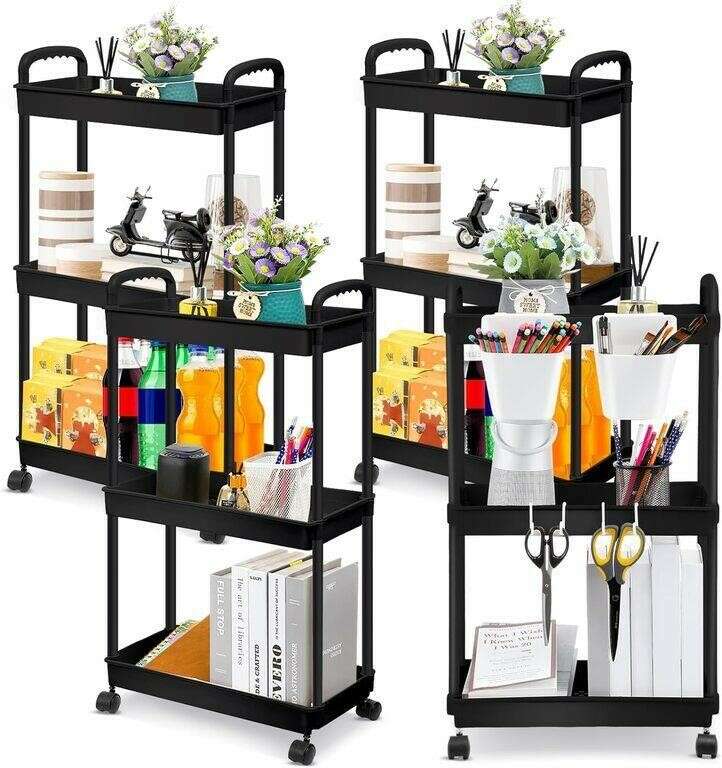 PayPalBrand New, never been used Leinuosen 3-Tier Plastic Rolling Utility Cart with Handle Multifunctional Movable Storage Trolley Organizer with Lockable Wheels for Bathroom Bedroom Kitchen Office Nail Store (Black)