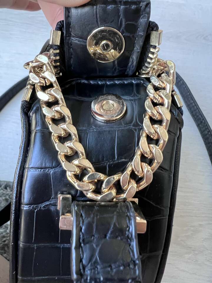 Gold metal chain and double zipper