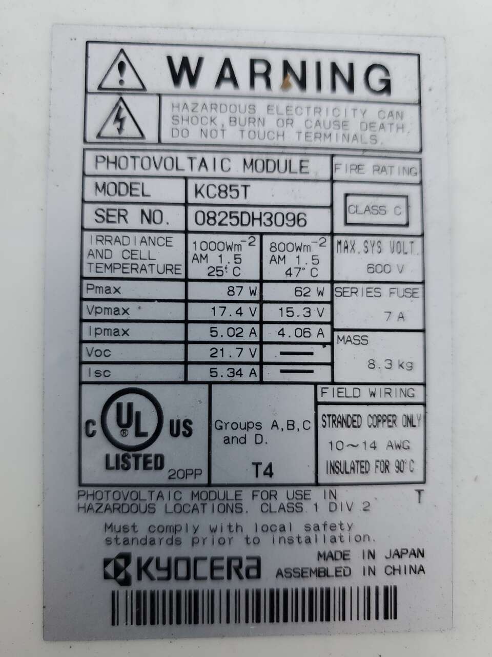 Used Solar panel removed from my truck camper. In good working condition, I just needed space for a bigger panel.