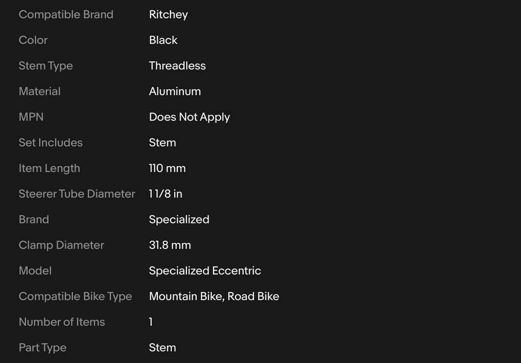 Thanks for checking out this Specialized ±8° 110mm Road Stem & for shopping with me here on KSL today and have yourself a great and a blessed day! ;-)
