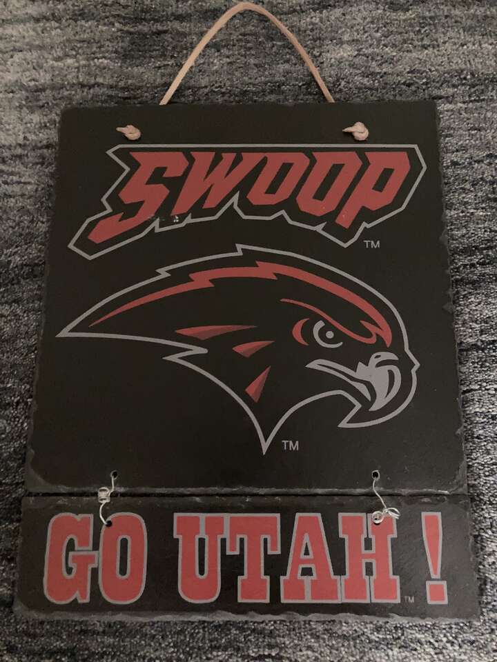 VenmoUtah Utes Swoop hawk on slate sign. Purchased years ago, color still in great condition.Measures approx. 14.5" x 11.5", Please see more by seller for many collectibles from family home and our own. (Lowered price from $25)