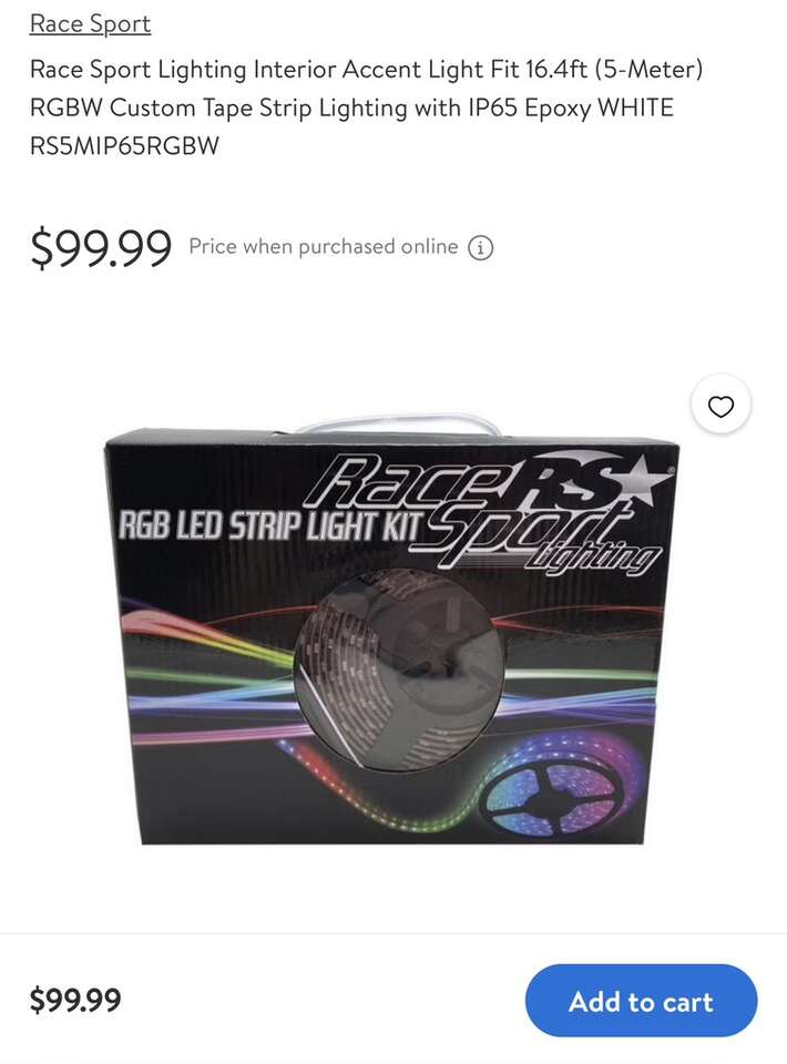 Race Sport Lighting Interior Accent Light Fit 16.4ft (5-Meter) RGBW Custom Tape Strip Lighting with IP65 Epoxy WHITE RS5MIP65RGBW
