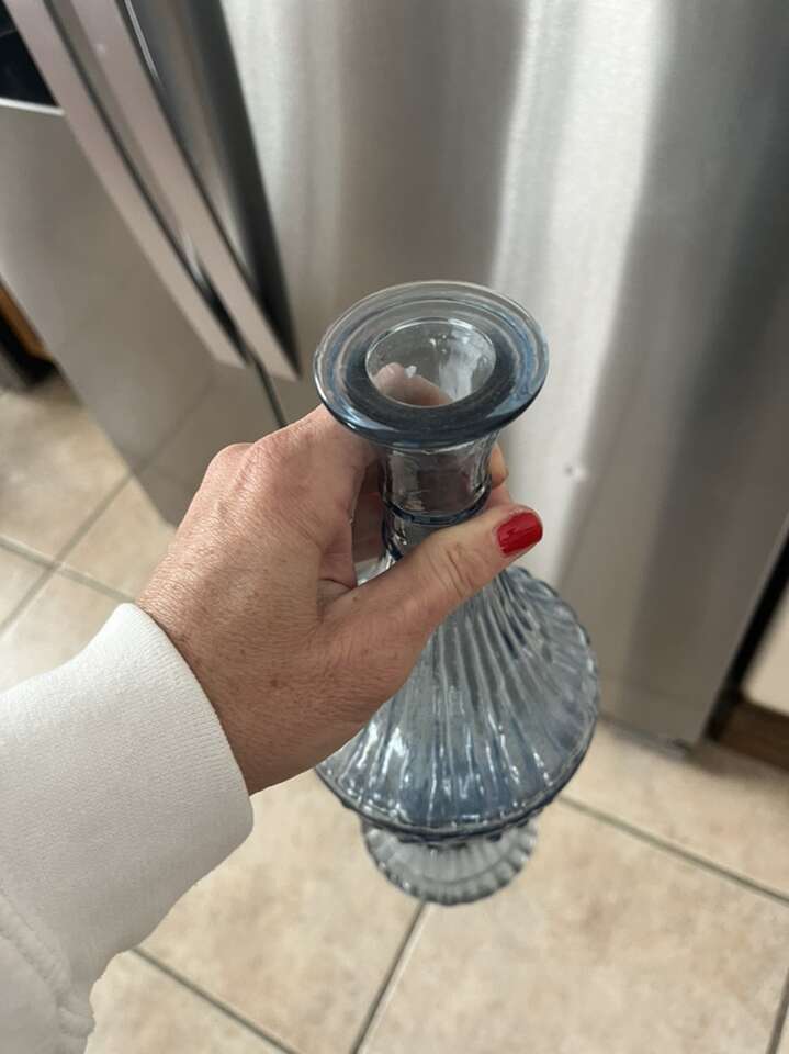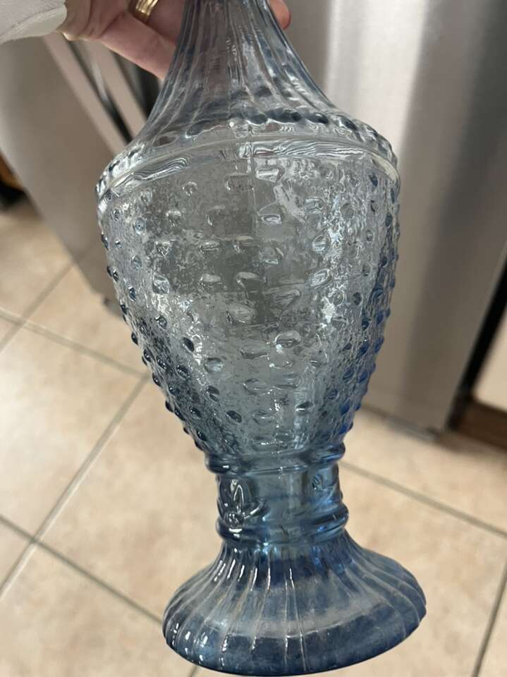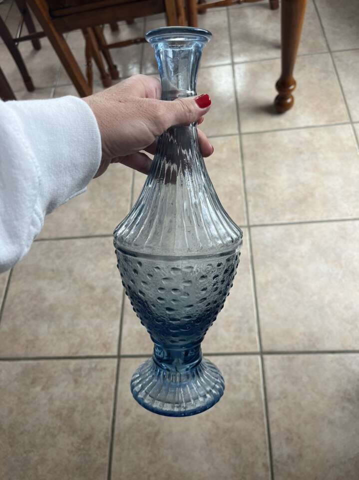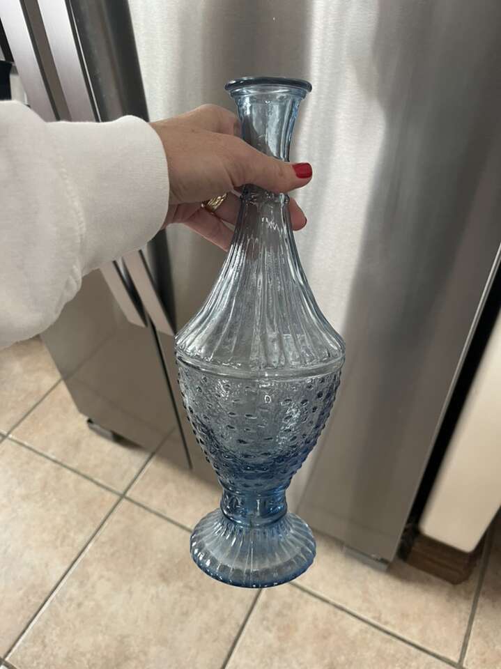 tall beautiful blue glass vase made in Spain 13” tall