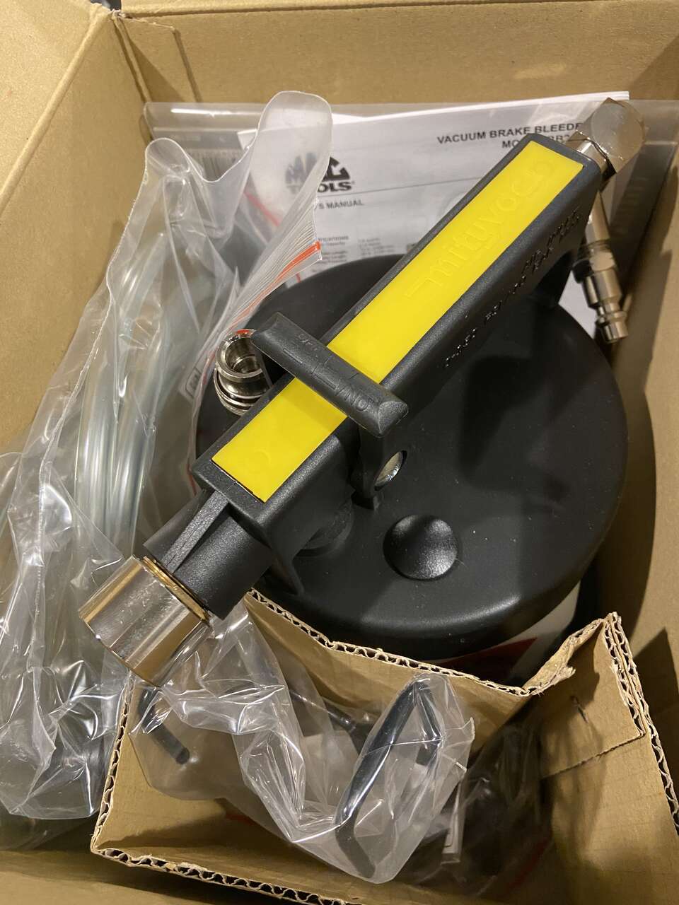 Venmo(1) Fluid Evacuation Wand for Draining Fluid Reservoirs |(3) Bleeder Screw Adapters |(1) Brake Fluid Refill Kit |(1) Hook for Hanging Bleeder