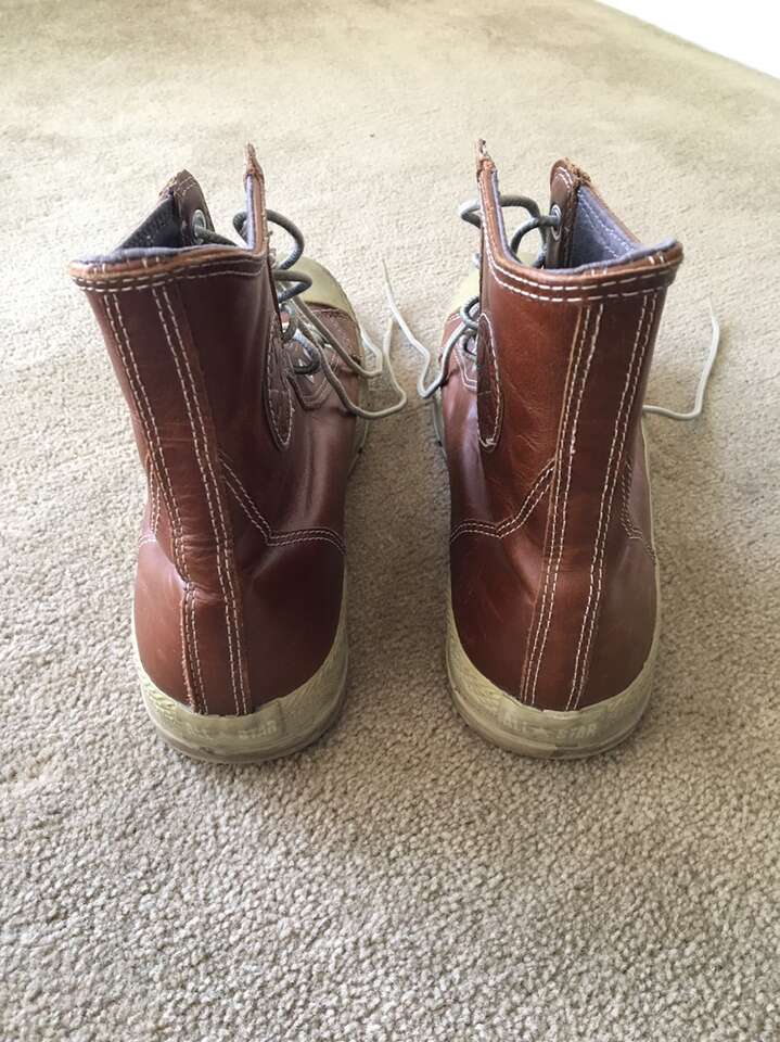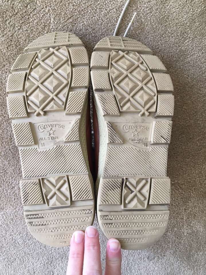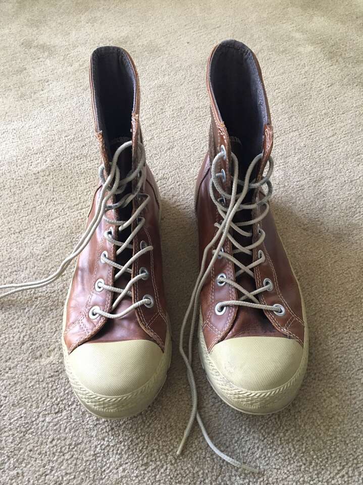 Genuine Chuck Taylor Converse All Star Leather High Tops, Men’s 11 (EU 45). Real leather uppers, sturdy rubber soles. High-quality shoes with s vintage look in very good condition. Text only. Cash or Venmo.