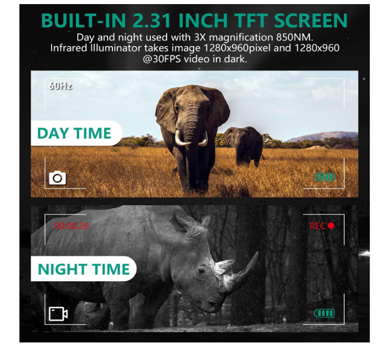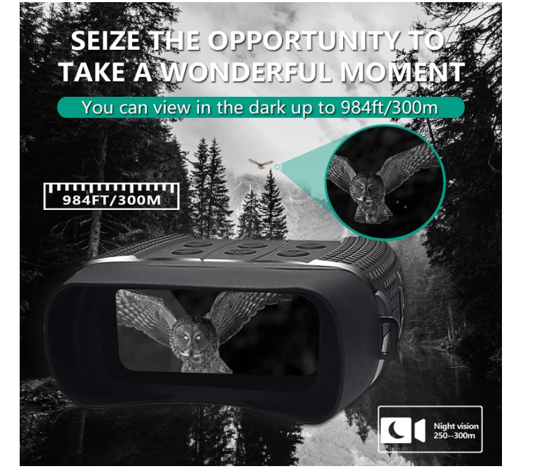 CashAppENHANCED CLARITY: Equipped with a 2.31" LCD display and 7-levels IR, our night vision binoculars deliver clear images and videos, you can observe objects from 980ft away in low-light or nighttime conditions.