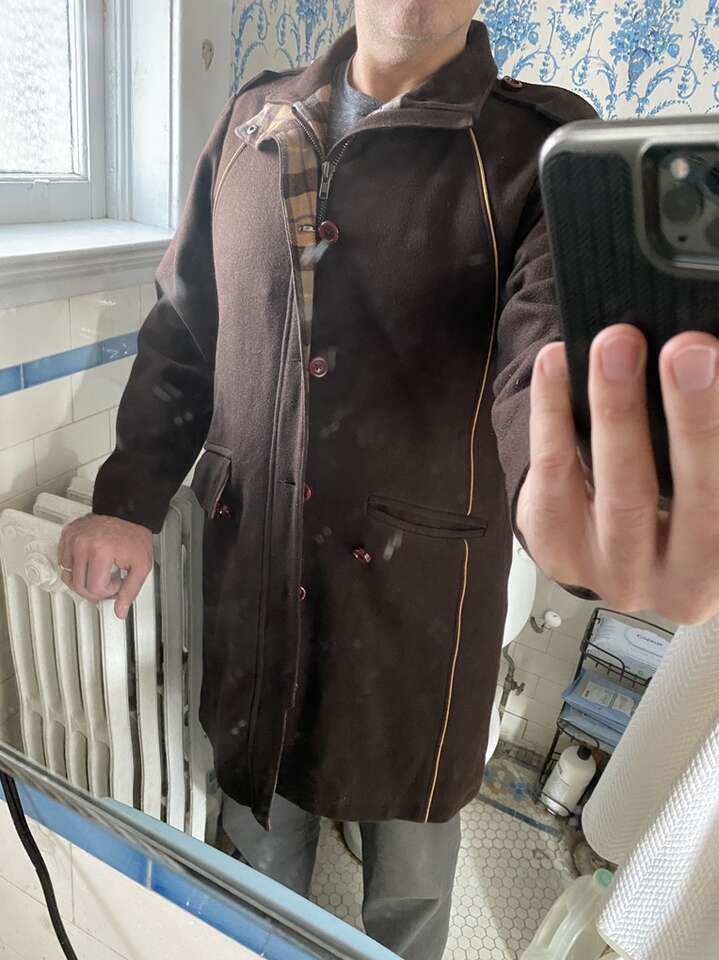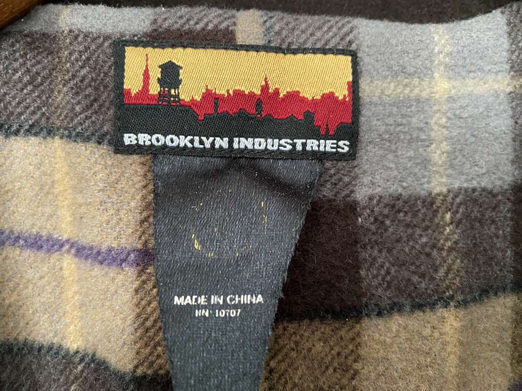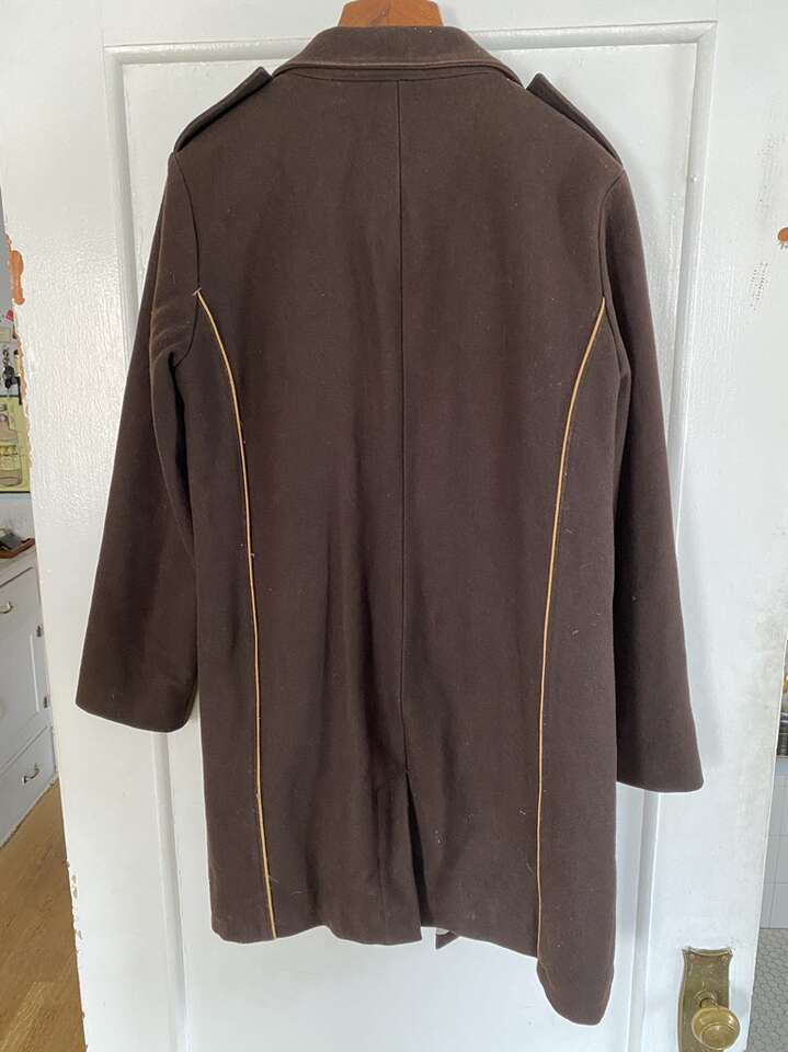 Size large brown wool coat with gold piping. This is the most soft, comfortable, and unique wool coat I have ever seen. Brooklyn industries is a designer brand and I bought this from the Brooklyn industries outlet in Brooklyn New York. I’m only selling it because it seems I will not get into a large correctly anymore. Vintage cool.