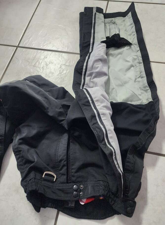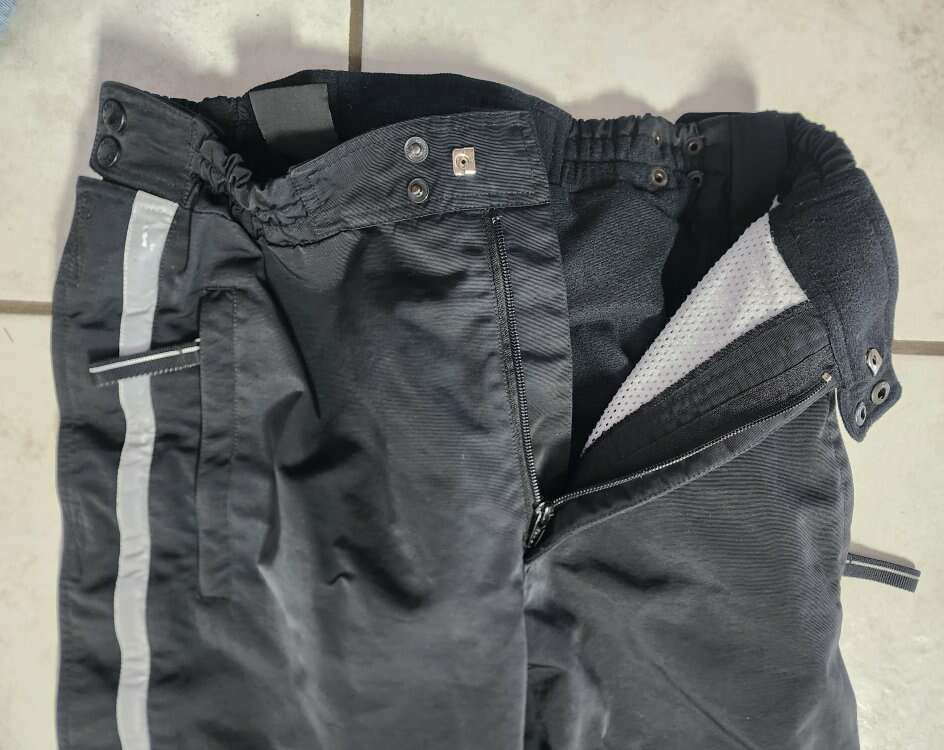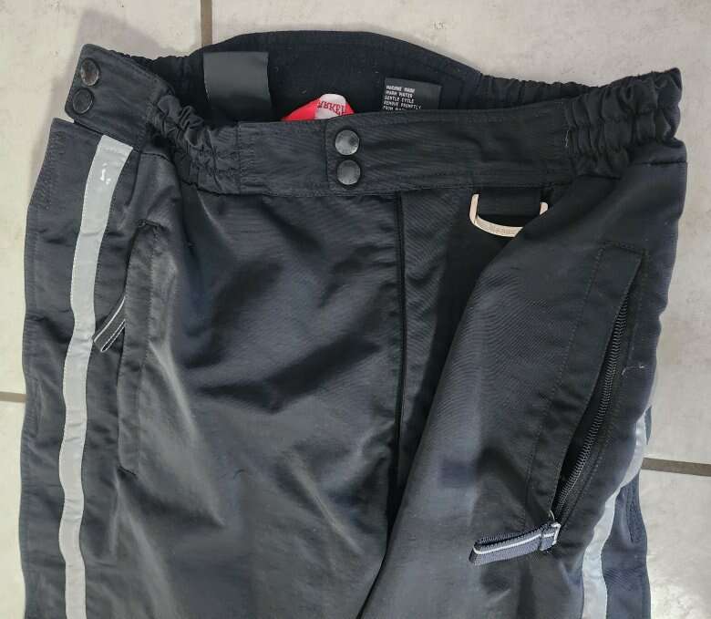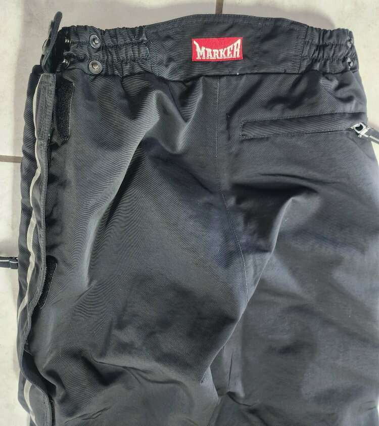 They are very well made, and extremely warm, in great overall condition, with a few small scuffs. There are four points of elastic in the waist band so it is stretchy and adjustable. The legs have a full-length zipper with velcro closures. Fabulous pants.