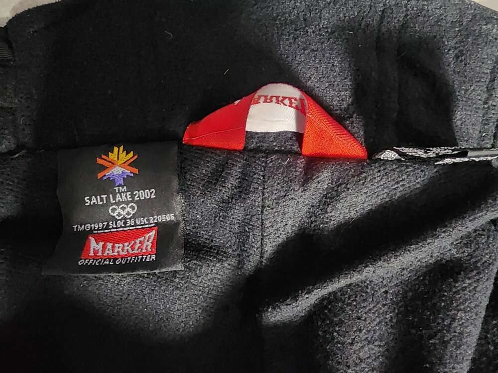MARKER 2002 Salt Lake City Olympics Black Ski Snowboard Snow Pants Size XS (runs larger, though). Fits approx size 8 women.