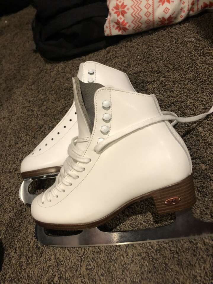 Ice skates size 4 adult they are like new never been on ice. 49$ I also have a used pair size 12 kids white for 20$ size 2 boys pictured are 15$