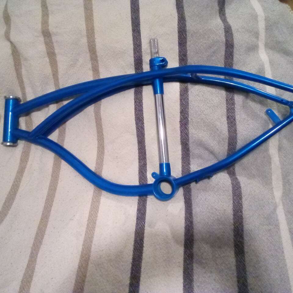 PayPalBrand New Intense Lazer blue pearl with aqua blue metal flake lowrider bike frame with chrome plated center post.