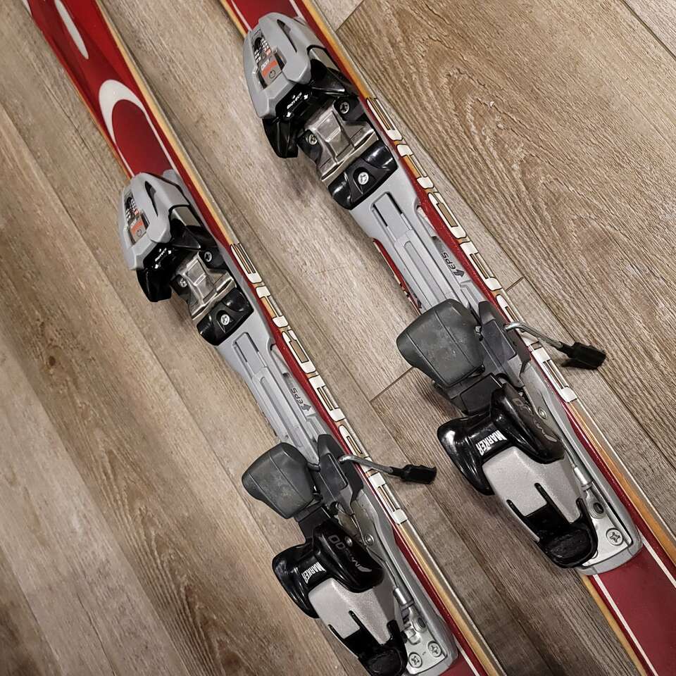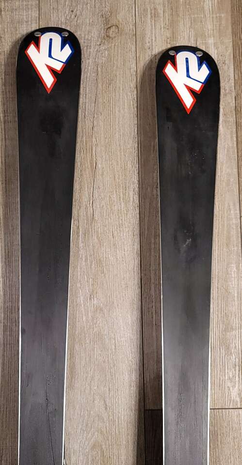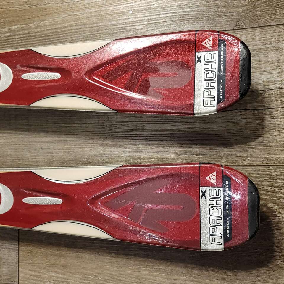 K2 Apache X 160cm downhill Skis w / 18mm side cuts, 108 / 68 / 99 widths, and Marker M1000 Bindings
