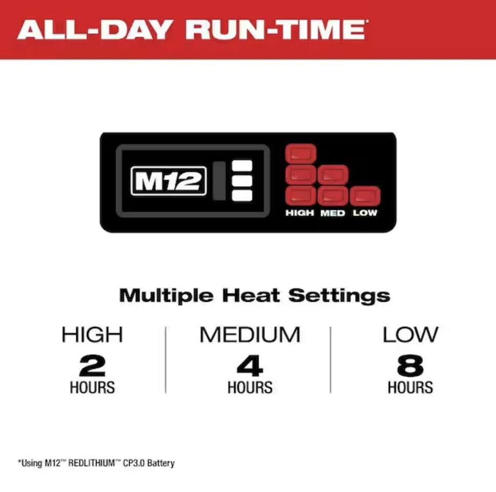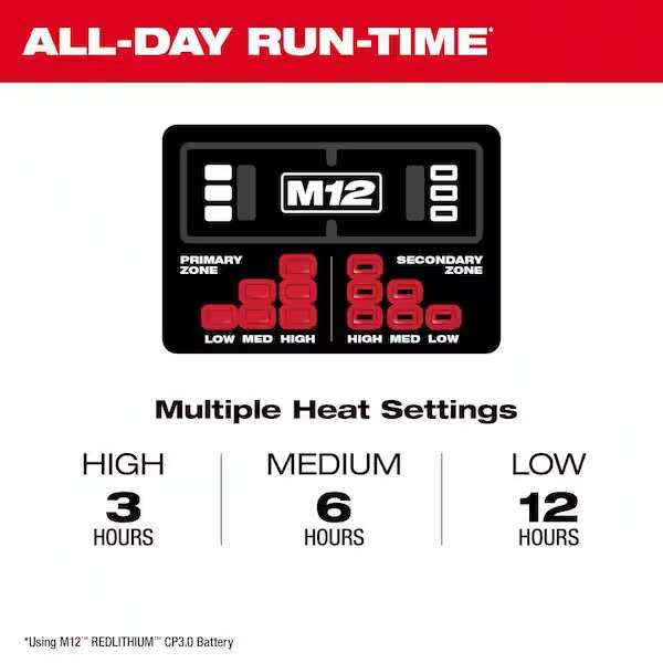 ---------------------------------- - -MENS JACKETS & VESTS - The M12 TOUGHSHELL Heated Jacket is powered by M12 Batteries and features an advanced heat technology system that combines lightweight and durable carbon fiber heating elements, Quick-Heat functionality, enhanced fabric construction, and optimized interior liners to deliver HEAT BUILT TO OUTLAST. Our new generation TOUGHSHELL Stretch Polyester has been re-engineered to stretch and move as you work while being as tough as previous TOUGHSHELL jackets. This MILWAUKEE heated jacket has a unique battery pocket Pass-Thru design that is easy to use with front or back pocket battery placement, allowing you the versatility and comfort needed depending on the situation. This Milwaukee heated coat is a go-to for protection from the elements on the jobsite or when enjoying the outdoors. - ———————————— - -M12 HEATED HOODIE - Powered by M12 Batteries, the MILWAUKEE Heated Hoodie provides HEAT BUILT FOR COMPLETE COMFORT. Using a one-touch LED controller, the advanced carbon fiber heating elements create and distribute heat to the chest and back. Our Quick-Heat function allows our users to select from three heat settings and feel heat 3X faster than market competitors. A hidden battery pass-thru pocket construction allows for front or back battery placement, increasing comfort and flexibility depending on the situation. Combining a durable cotton/polyester fleece and comfortable jersey lining, this hoodie provides a versatile three-season solution to keep heat in and not add bulk. - ———————————— - -WOMENS JACKETS & VESTS - The MILWAUKEE M12 Women's Heated Jackets are designed to protect from cold and weather on the jobsite. Powered by M12 Batteries, these heated jacket kits use carbon fiber heating elements to create and distribute heat to the chest, back and shoulders. A single touch LED controller heats up the battery heated jacket to three heat settings, creating a comfortable heat for any environment. This MILWAUKEE heated jacket kit has a new Quick-Heat funtion that creates and distributes heat three times faster than our previous women's jackets and market competitors. Ripstop Polyester provides a lightweight, compressible design that can be used as an outer shell or a mid-layer jacket, and protects from wind and water. - ———————————— - -M12 BATTERY HOLDERS - There are two different Battery Holders to choose from. The basic, included is simply a holder that supplies the power to the coat. Or upgrade to the USB battery holder to charge your phone (or other devices) while using in or out of your jacket. Plus you can charge your M12 battery almost anywhere with it in the holder.