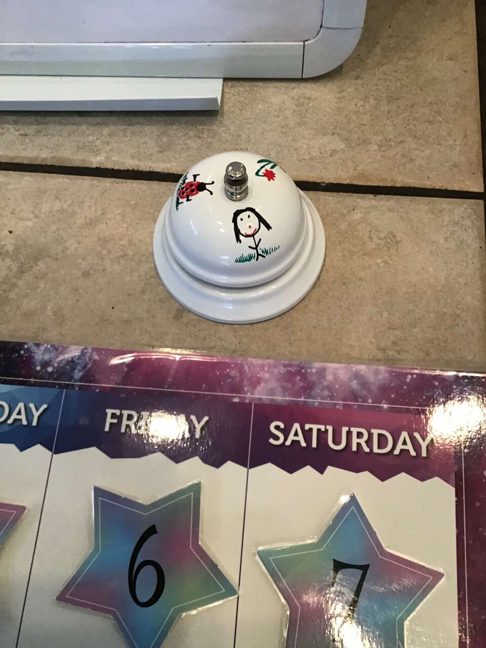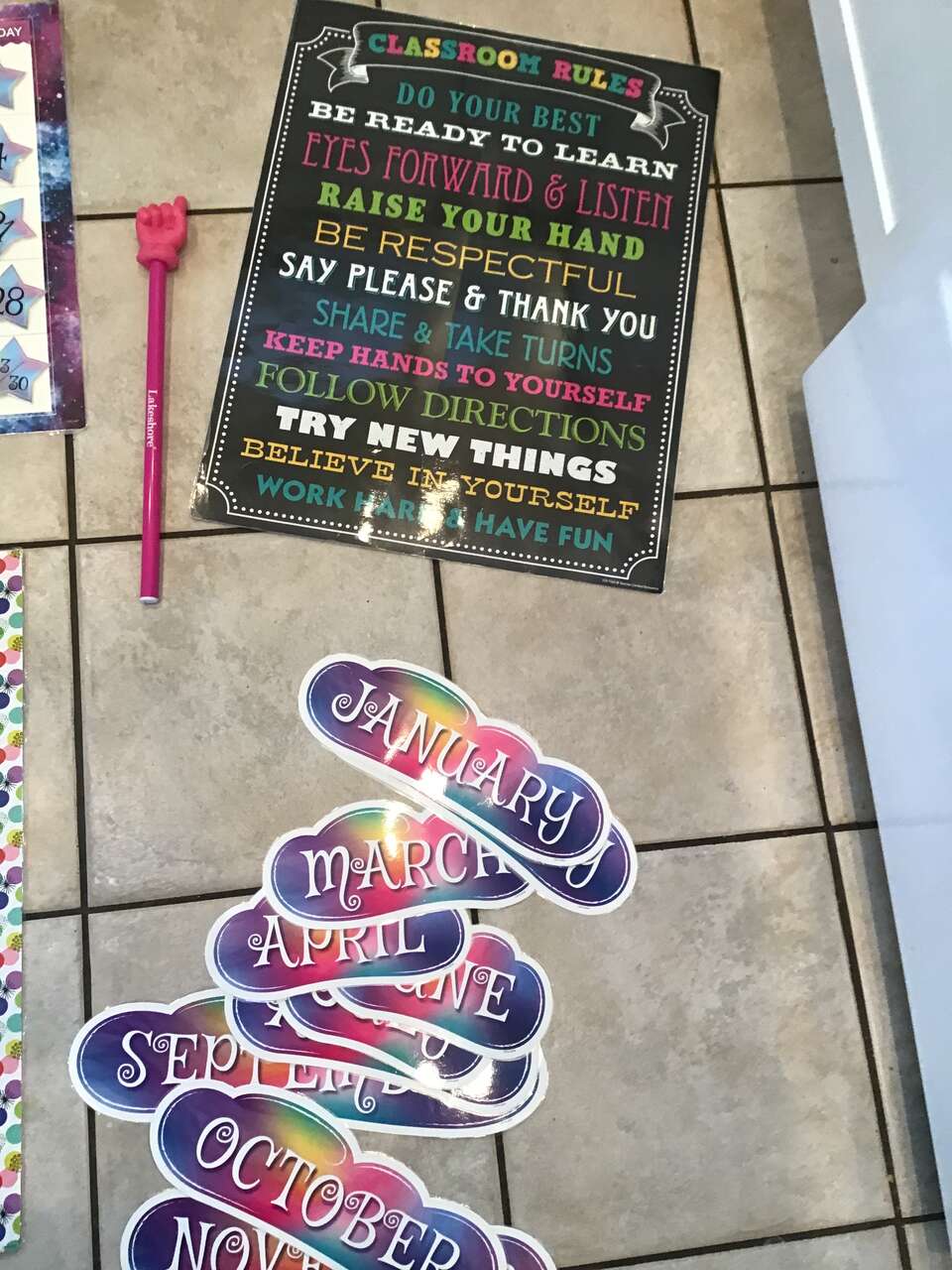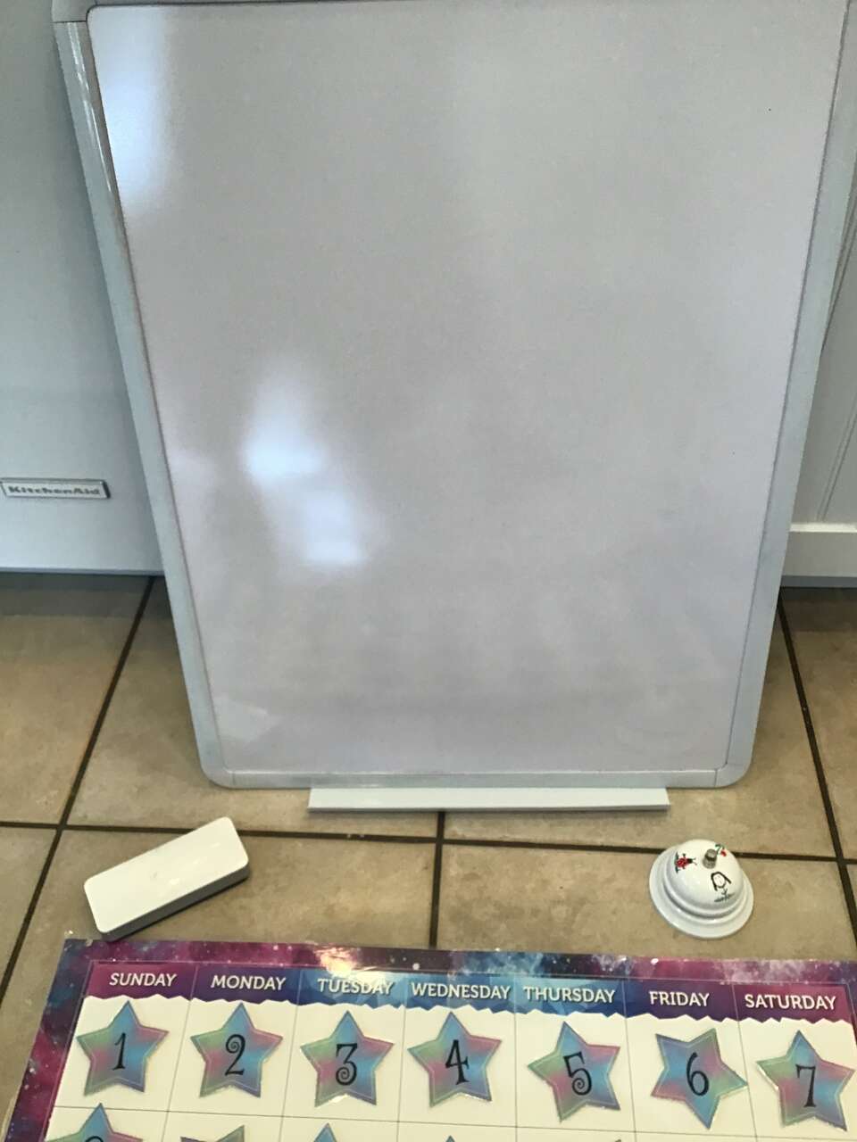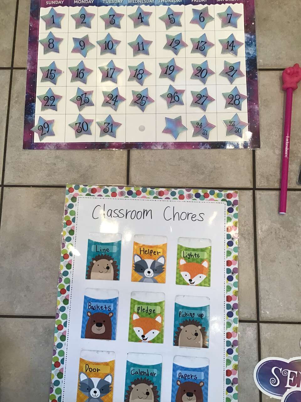 All Pieces are laminated and have Velcro to stick . White board and large laminated posters are 20" X 19". Bell, timer,pointer, eraser included. Fun set for playing school :)