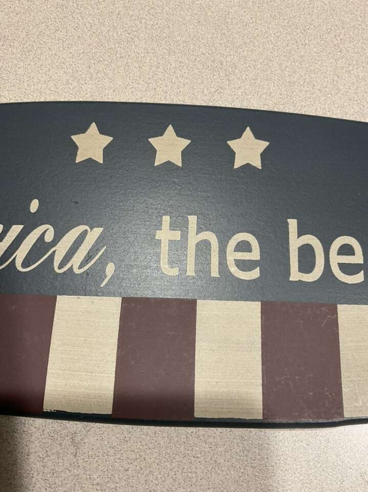 Wood hanging sign is lightweight and could be used on a wreath or shelf. The size is 18 x 5 1/2 inches