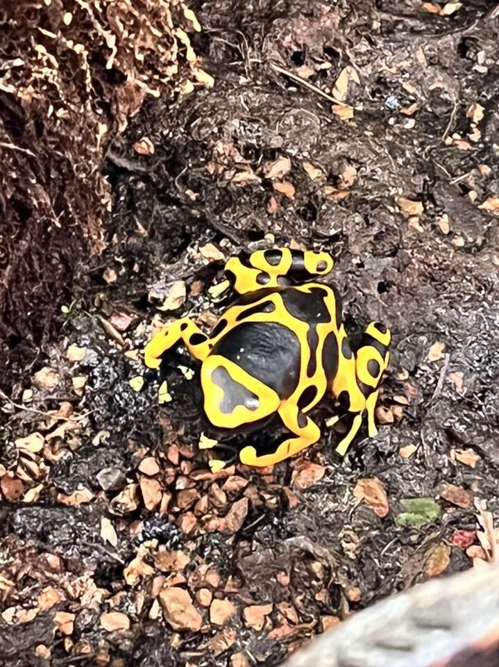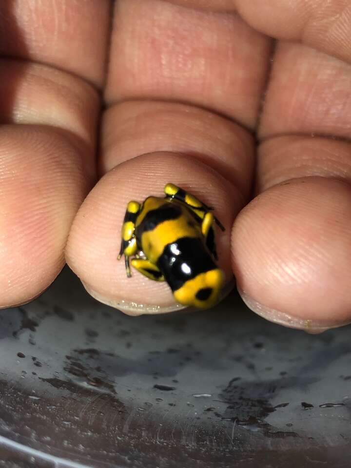 Bumblebee Dart Frogs, Dendrobates leucomelas Standard ranges in Columbia, Brazil, Venezuela, and other parts of South America. Larger dart frogs that do well in groups. Males have a very distinct call. Some of my individuals will have greenish feet.