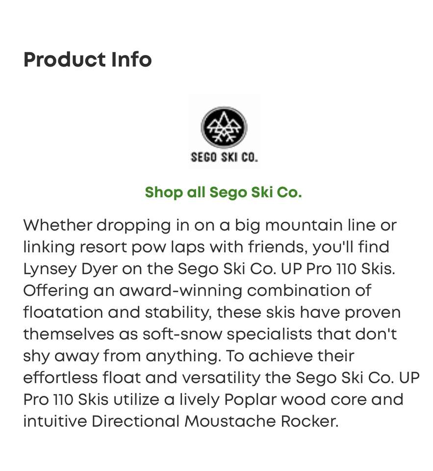 VenmoA GREAT PAIR OF WOMENS SEGO UP PROS. I PUT THE MANUFACTURES DISCRIPTION WITH THE PHOTOS. GREAT ALL AROUND SKI AT 110mm @ THE WASTE. SKIS ARE MOUNTED WITH MARKER GRIFFON BINDINGS AND HAVE MINIMAL TOP SHEET SCRACHES AND THE BASES ARE IN GREAT SHAPE. THANKS FOR LOOKING!
