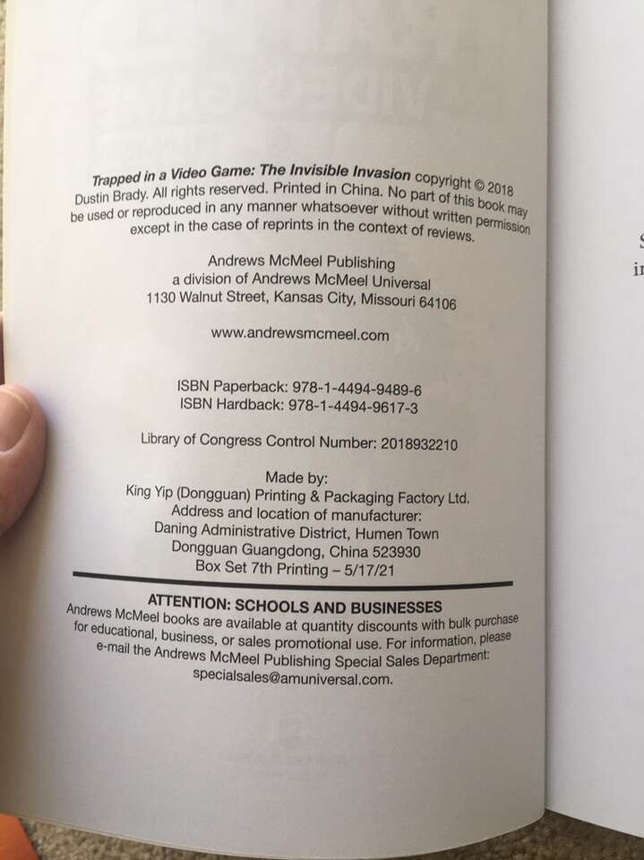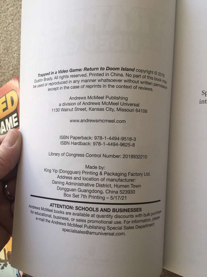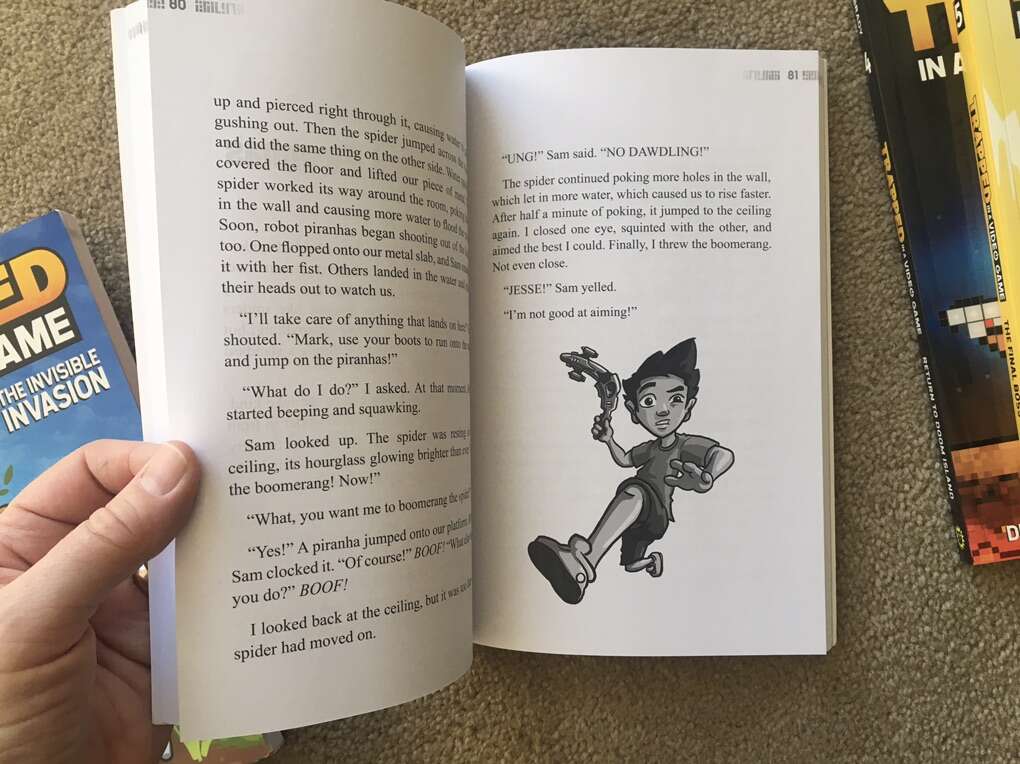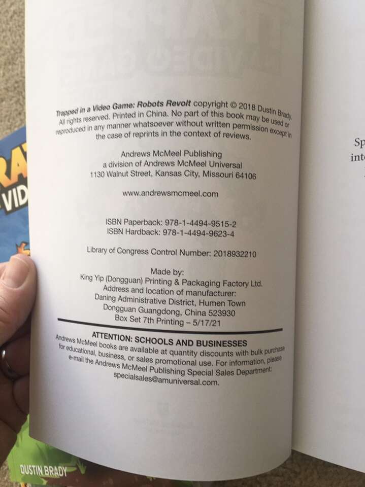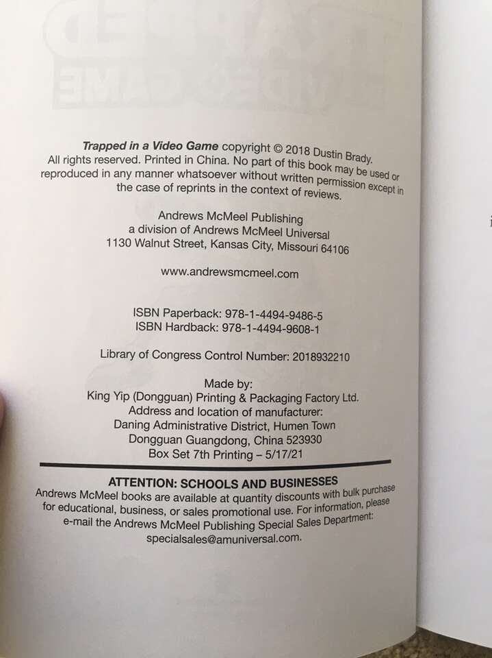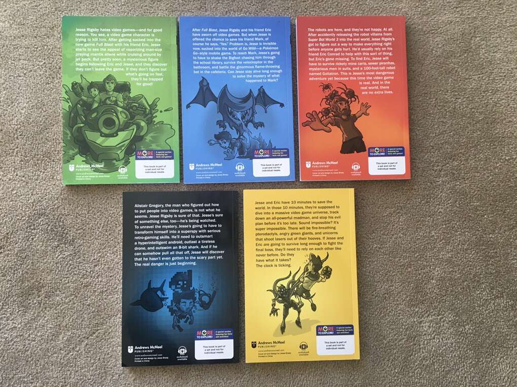 Trapped in a Video Game Complete Series 1-5 box set, by Dustin Brady, illustrated by Jesse Brady: Trapped in a Video Game, The Invisible Invasion, Robots Revolt, Return to Doom Island, and The Final Boss. Ages 8-10. Andrews McMeel Publishing, 2018-2019. Sturdy, oversize paperbacks in excellent condition, with slipcover. Text only. Cash or Venmo. Discount on multiple items.