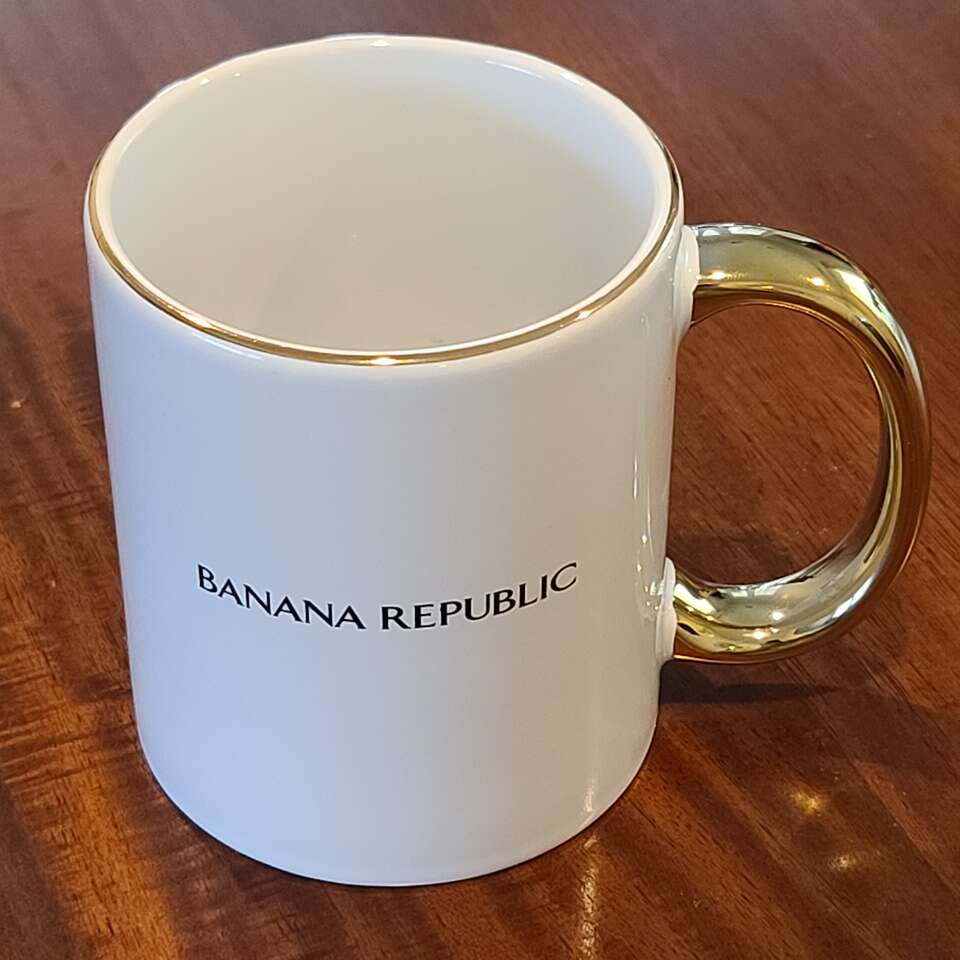 PayPalCeramic coffee/hot cocoa mug by Banana Republic. Gold trim is not microwaveable.
