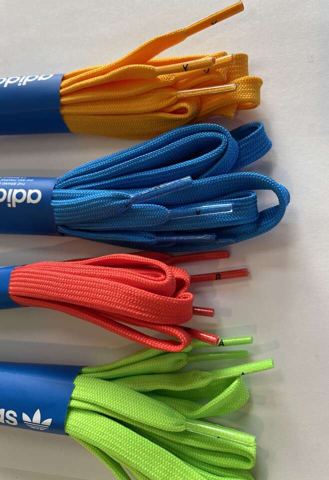 Additional laces have: A, B, X & Y on them Green has A Red has B Blue has X Yellow has Y