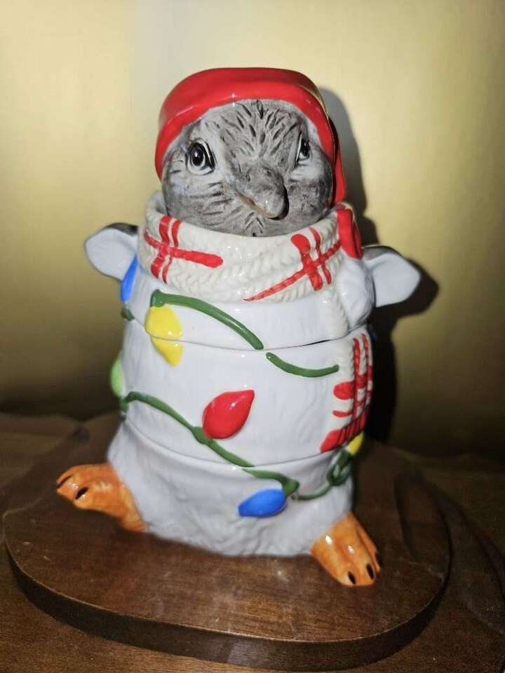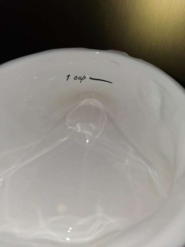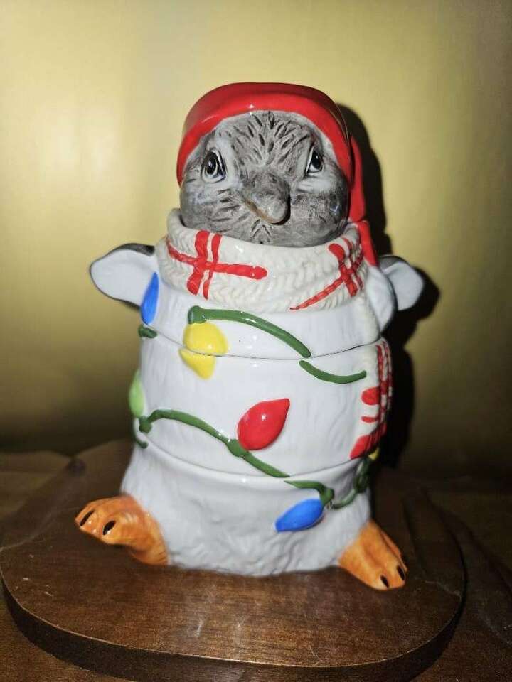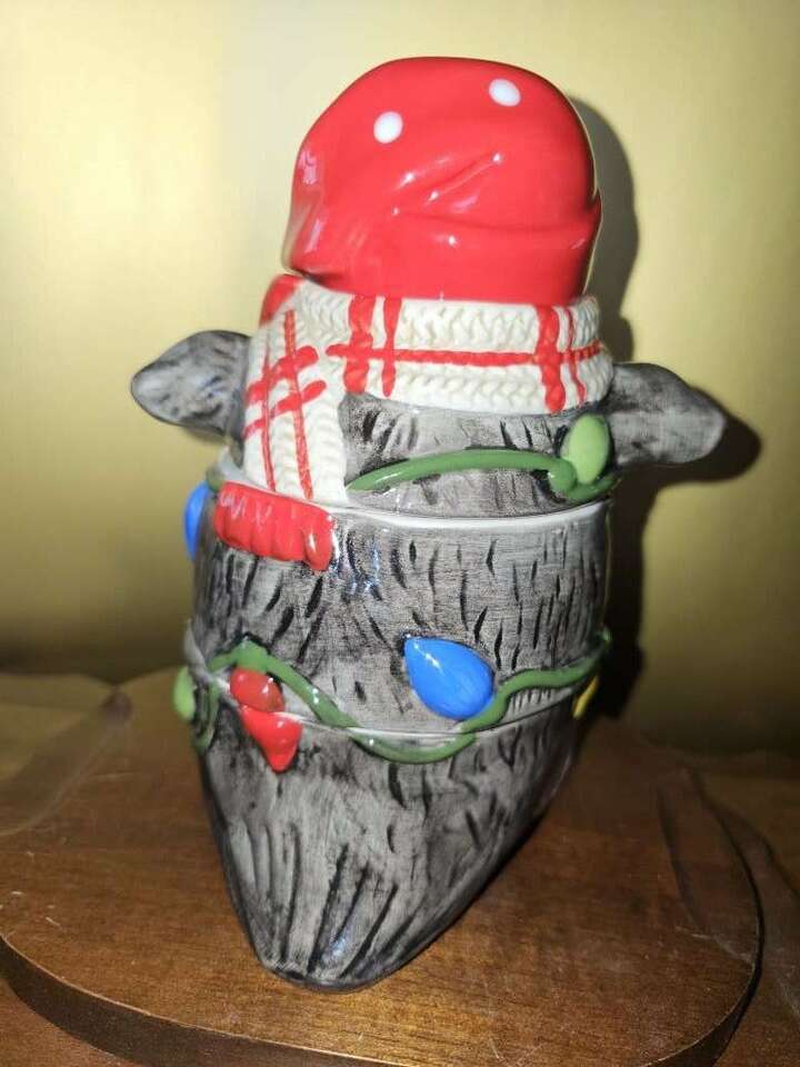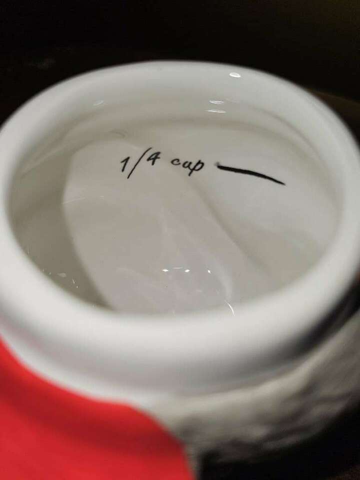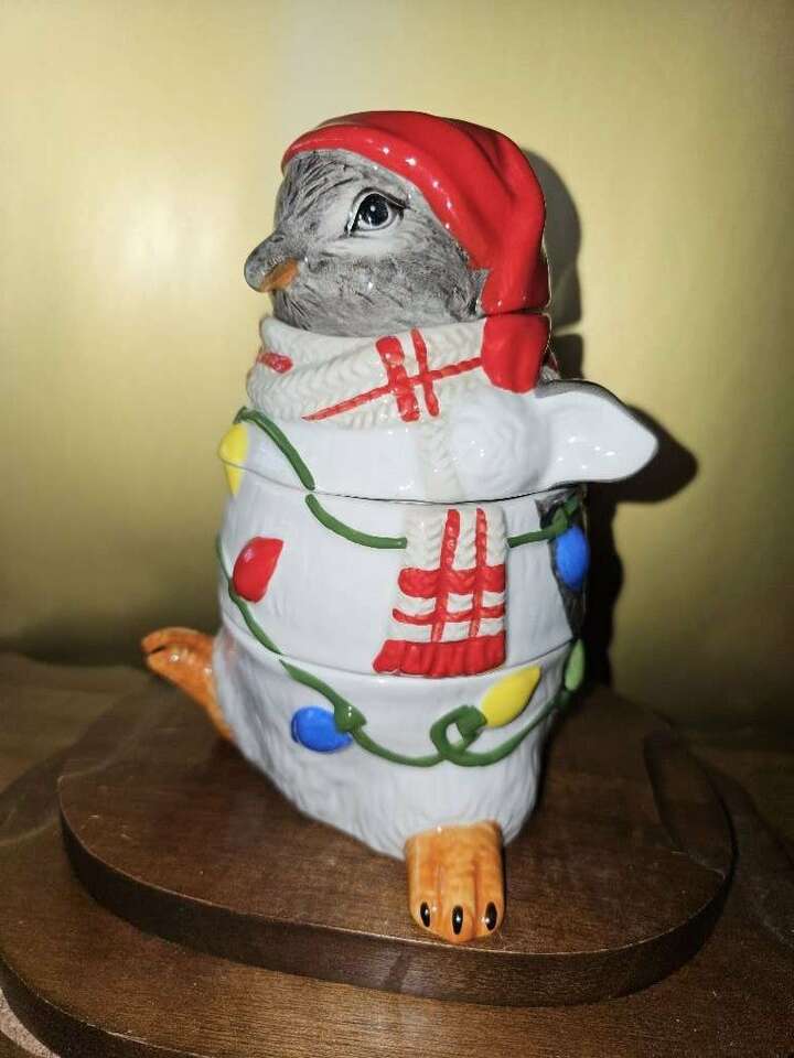 This festive, darling, four piece, Pier One stackable measuring cup set has all been meticulously hand painted. The whimsical penguin doubles as a table top or kitchen shelf decor and can be used to measure one fourth, one third, one half and one cup.