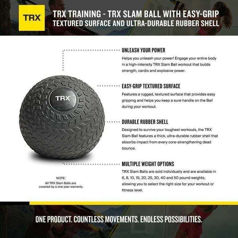 Venmo$20 or Offer (Retail $30) Brand New in Box TRX TRAINING SLAM BALL, 8 LB Our best-selling Slam Ball features a grooved tire tread texture, no slip grip and bounce-resistant construction. Get ready for the ultimate cardio, agility, and strength training tool you’ve ever met. Build muscle, fire up your core, improve rotational strength and slam your way into the best version of yourself! Textured tread exterior for maximum efficacy No slip grip design Bounce-resistant construction Double-walled interior for maximum durability Sand filled inner shell to maintain shape 60-Durometer rubber for comfort during heavy use Not for use on concrete or pavement $20.00 Or Best Offer Cash or Venmo Call or Text Nathan with any questions. 801-910-8387 Thanks 0314