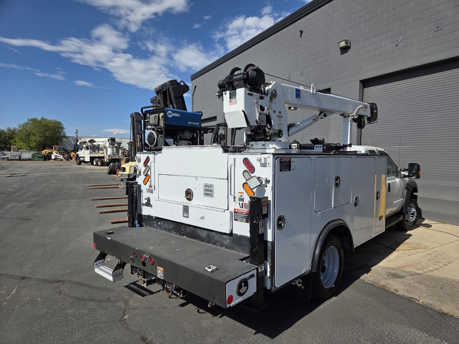 Ford Diesel, 6.7L, Automatic, 201k Miles, Autocrane 5,000 lbs Capacity, Plumbed for Hydrualic Air Compressor (Compressor has been removed), Miller Welder, 2WD, Drawers in Bins, Enclosed Sliding Rear Cover, PTO Hours -240, Current DOT Inspection
