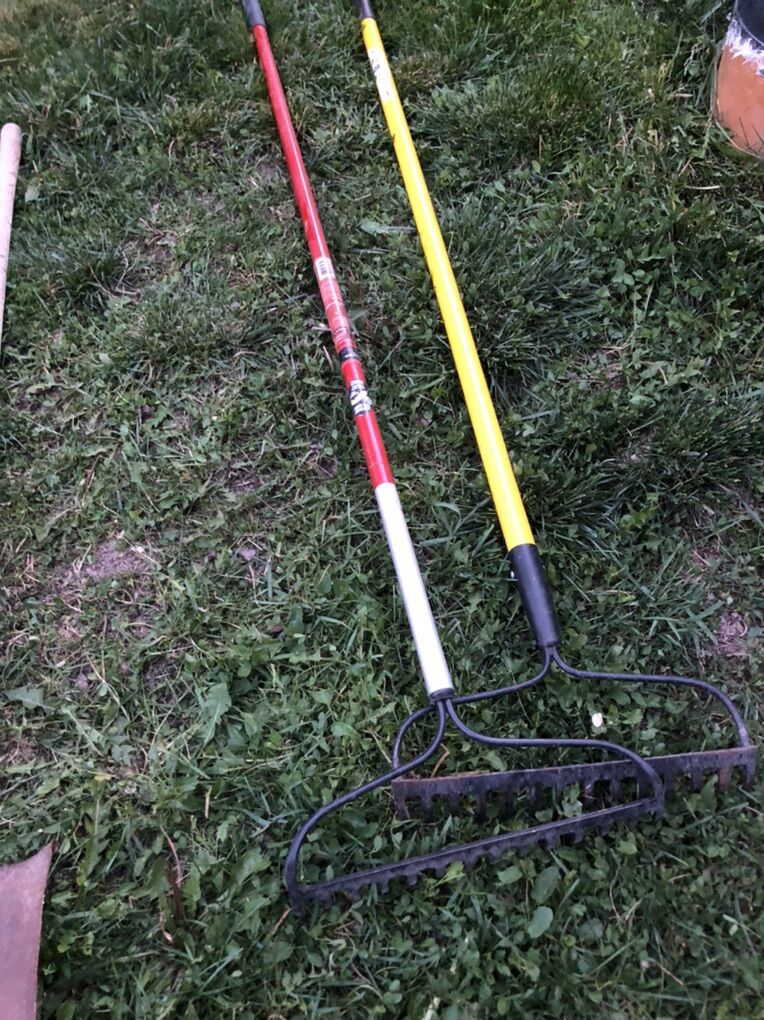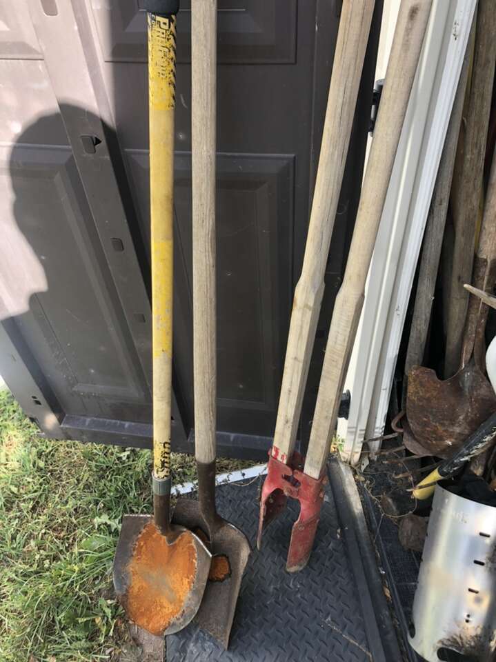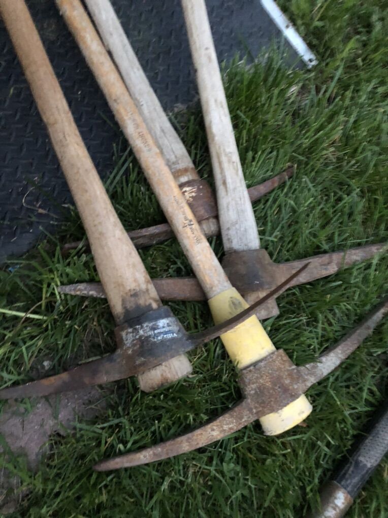 Shovels 10$ sledgehammer 15$-20$ pickaxes 15$ Trench shovels 15$ each Leaf rakes15$ Bow saws 10-15$ Post hole diggers 25$-35$
