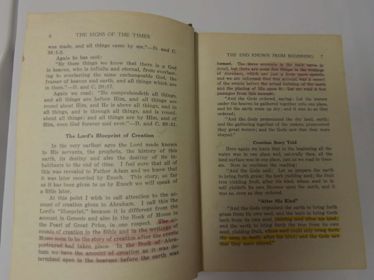 writing inside front cover, highlighting / underlining throughout