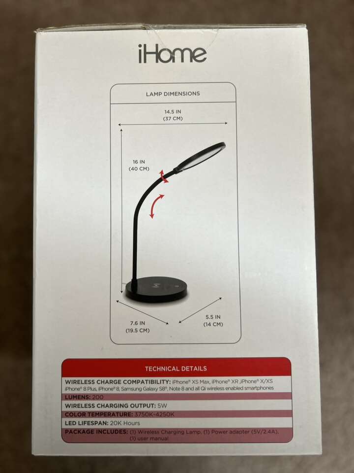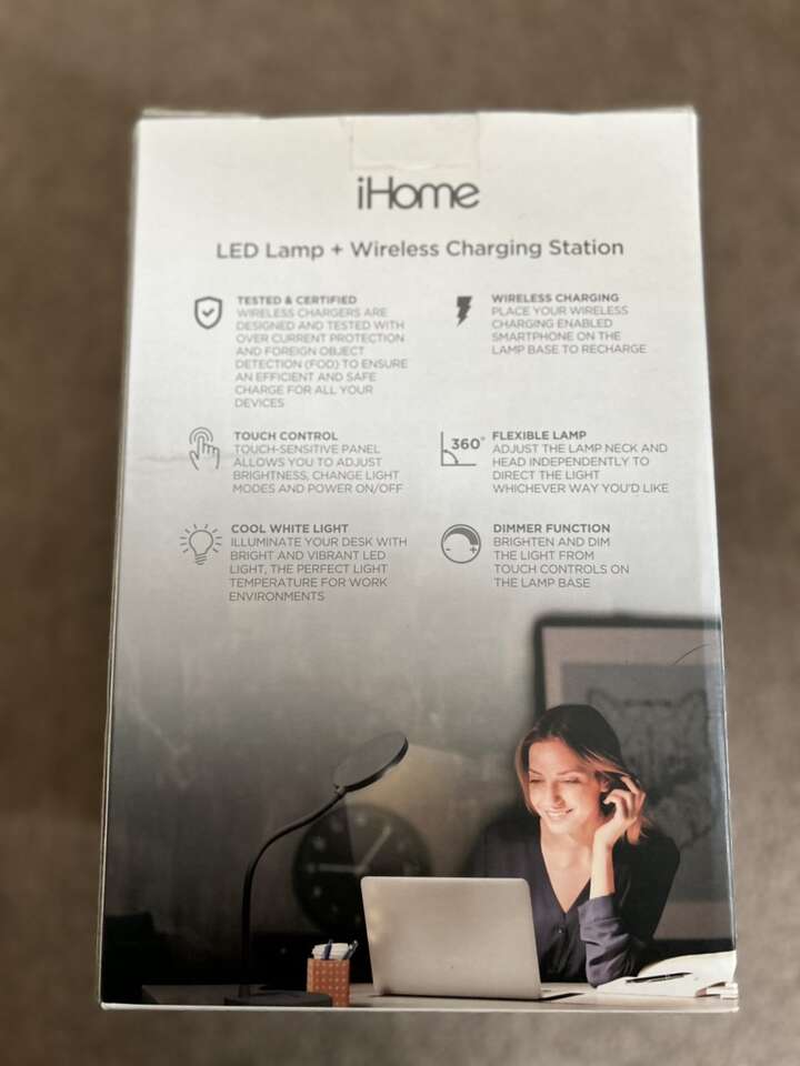Black iHome Wireless LED Lamp + Wireless Charging Station. Brand New and sealed.