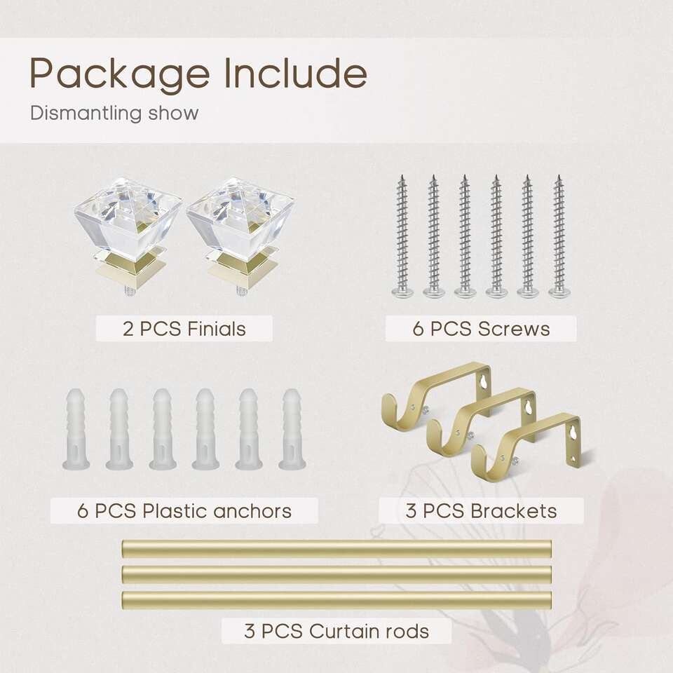 DAINTIER 3/4 inch Single Window Curtain Rod with Diamond Acrylic Finial,66-120 inch,Champagne Gold