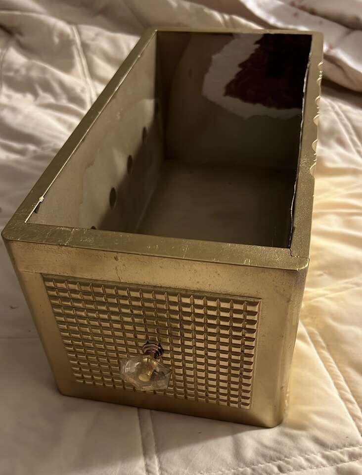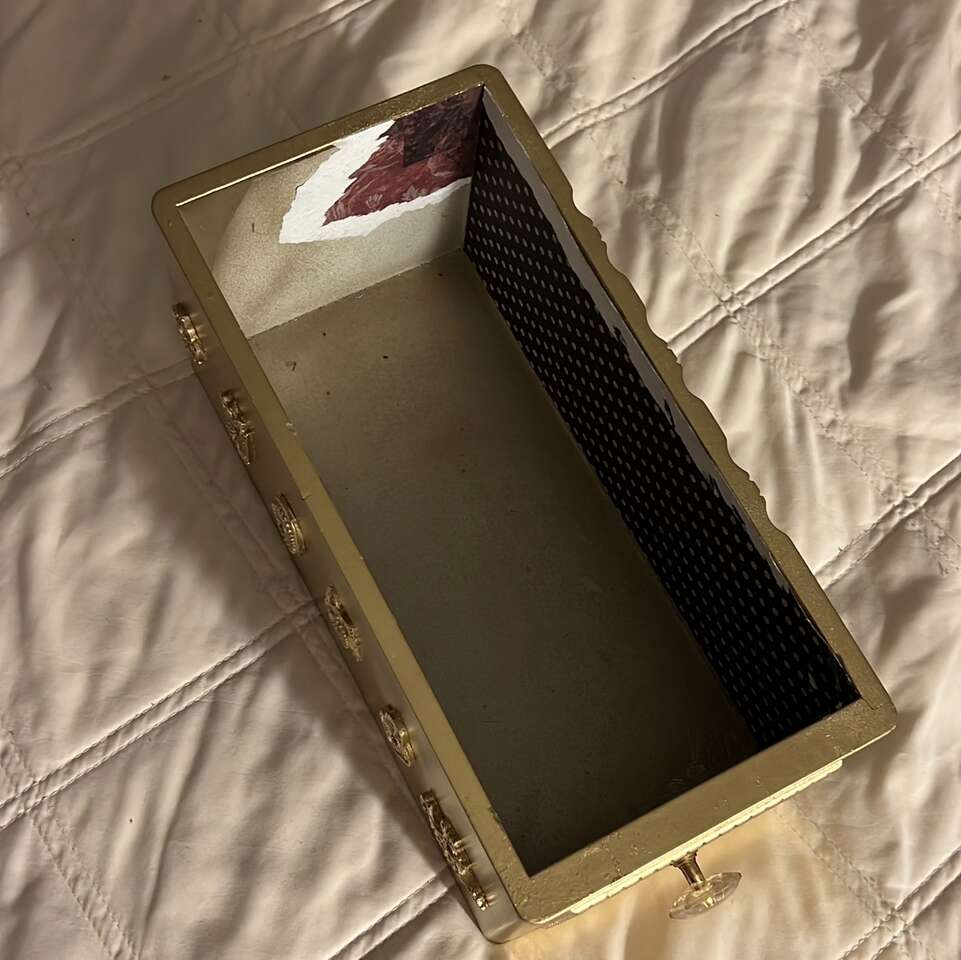 Beautiful Gold box to store what ever you want to store (makeup, cards) I currently was storing cards for my stationary but I don't need it anymore.