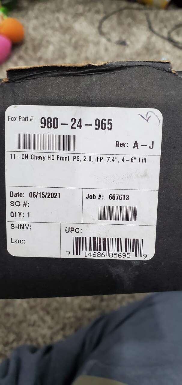 Part Number 980-24-965 Brand new Fox 2.0 Performance Series Smooth Body IFP Shock; Aluminum; Extended 22.61 in.; Collapsed 15.17 in.; Stroke 7.4 in. Fits 2011-on chevy silverados $250 for the pair. Call or text brian at 805-630-4424